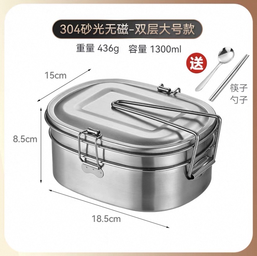 Двухслойный ланч-бокс 304 [большой размер] поставляется с ложками и палочками для еды.