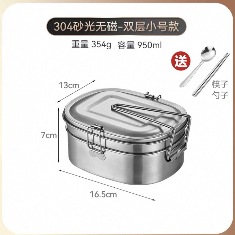 Двухслойный ланч-бокс 304 [маленький размер] поставляется с ложкой и палочками для еды.