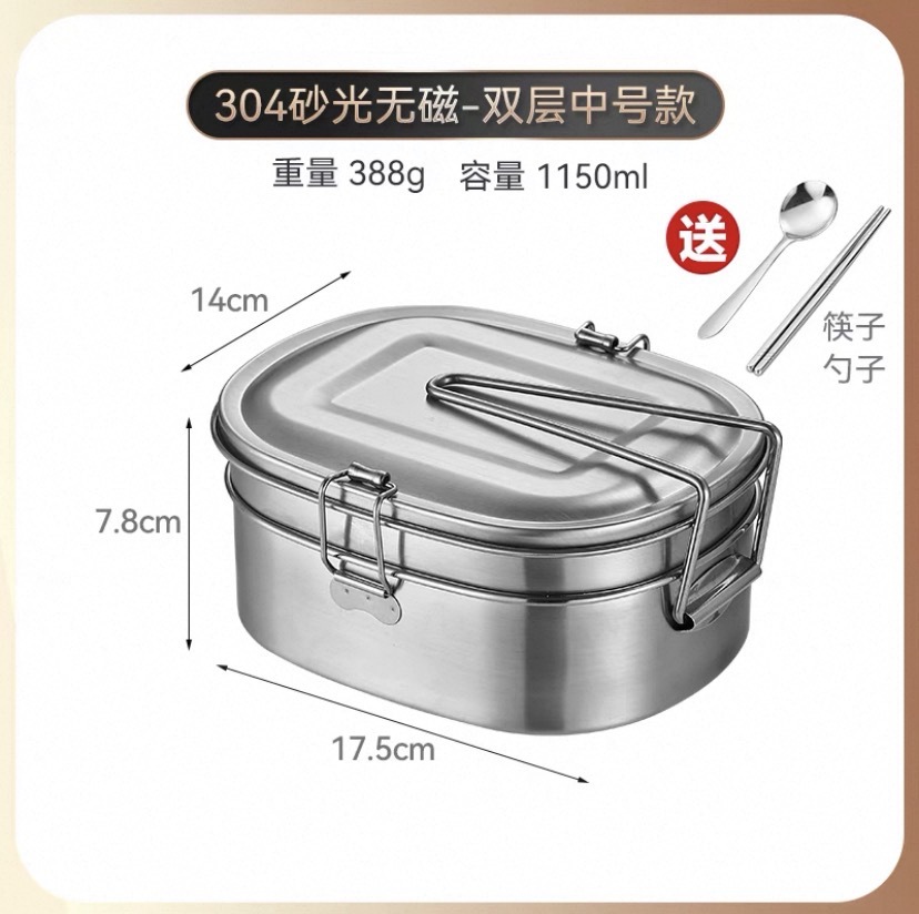 Двухслойный ланч-бокс 304 [среднего размера] поставляется с ложкой и палочками для еды.