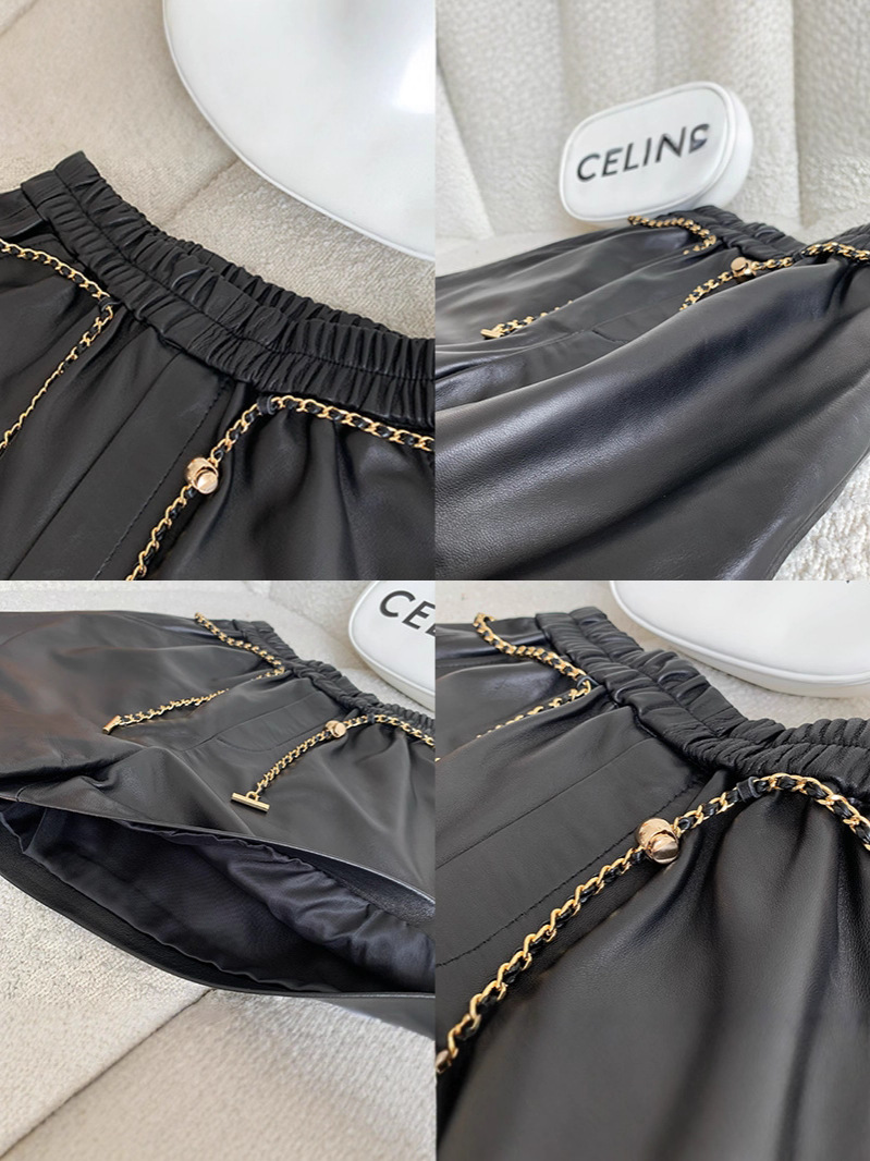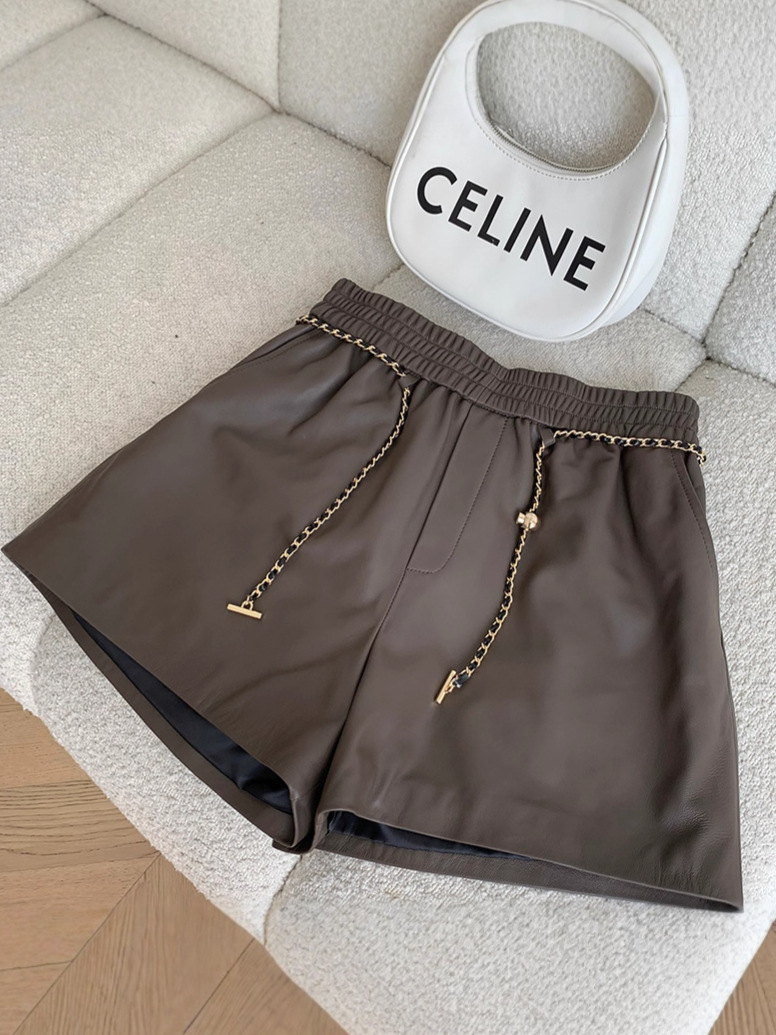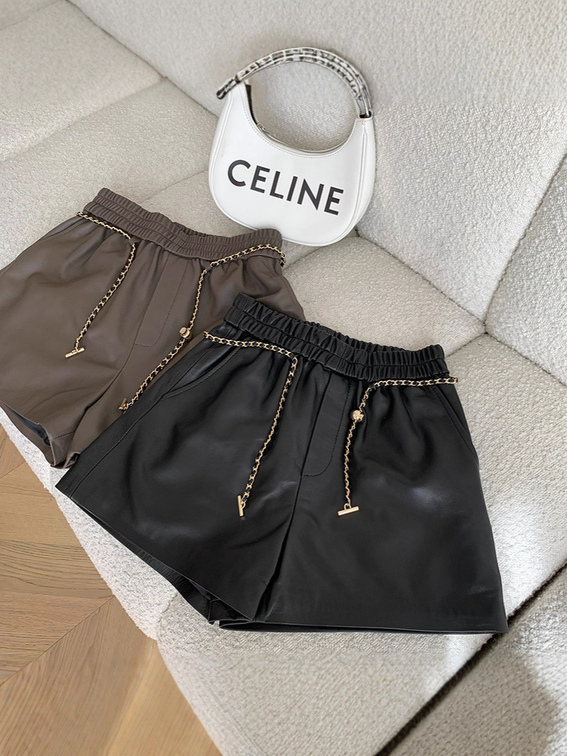 Главная страница > 真皮皮裤HN3651绵羊皮装饰腰链休闲直筒高腰小个子友好显瘦短裤女