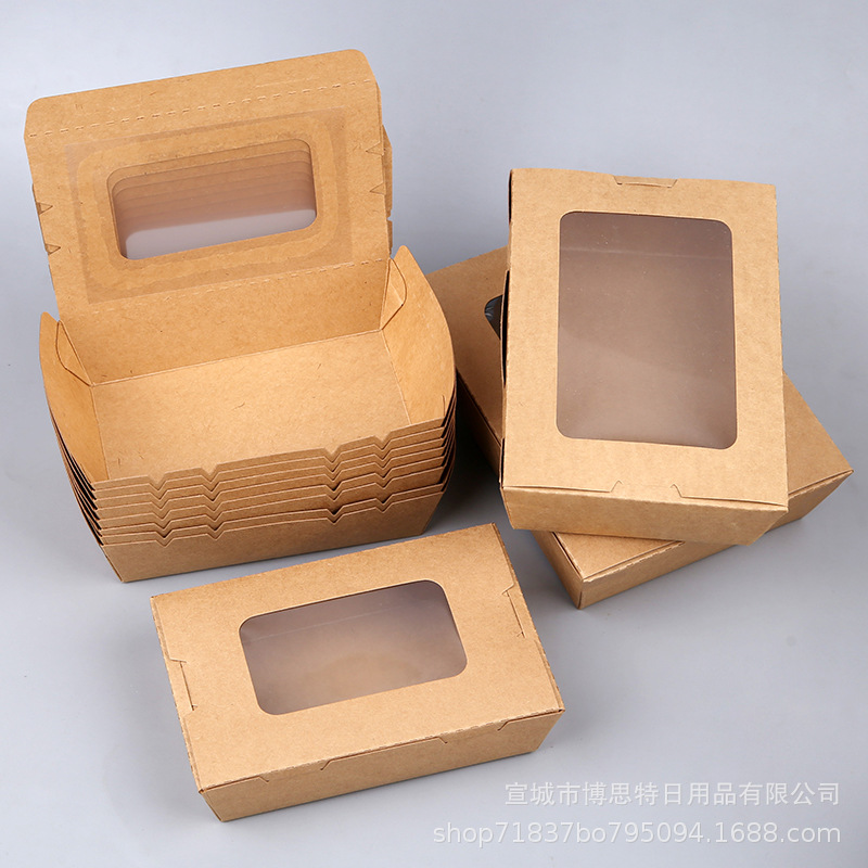 Главная страница > Прямые поставки с завода: крафт-бумажный контейнер с окном для еды на вынос, прозрачный ланч-бокс для суши и салатов, 1200 мл