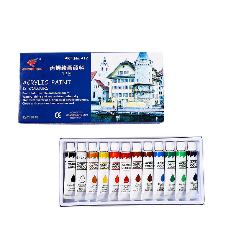 12 мл акриловый пигментный костюм завод прямая продажа 12/18 цвет детский гуашь бумажный ящик для инструментов акварельный Пигмент оптом