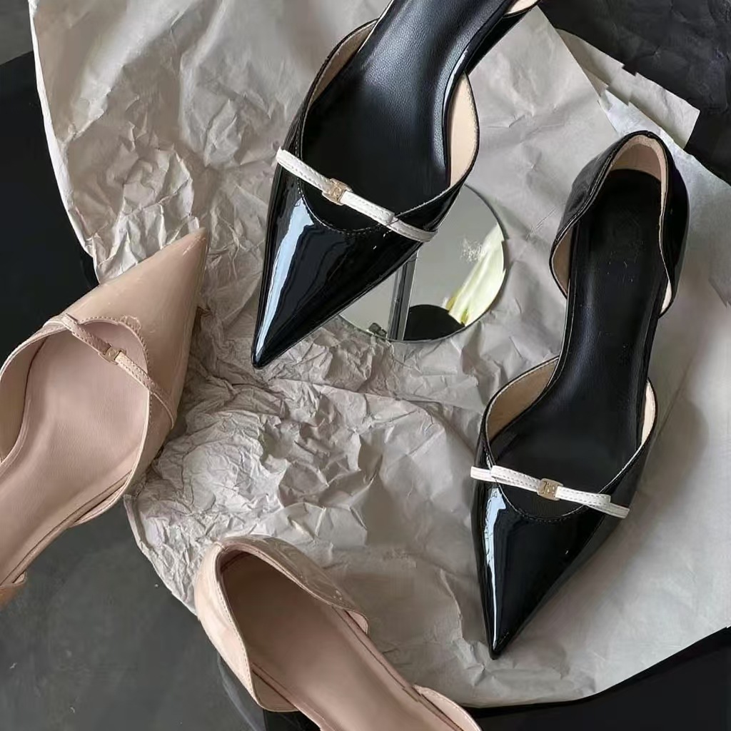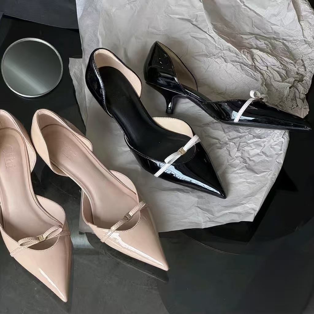 В наличии: винтажные французские элегантные босоножки-стилето на шпильке с острым носком, бантом, металлической пряжкой, закрытым носком, ажурные, с неглубоким вырезом, для женщин