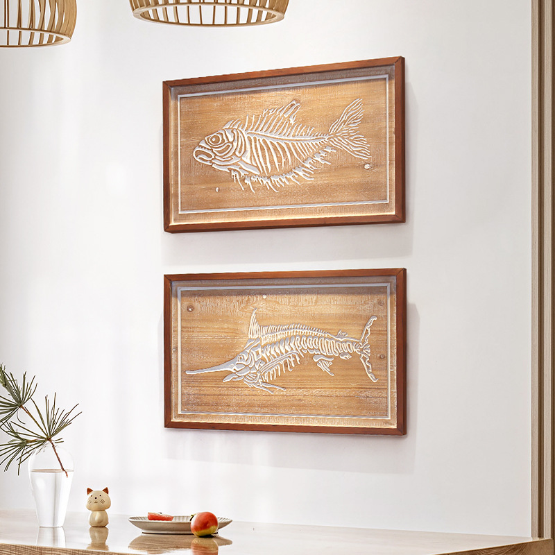 Главная страница > Японский ваби-Саби ветер декоративная картина из цельного дерева гостиная диван фон стена Дерево Рыба кость ископаемая спальня кровать висит картина