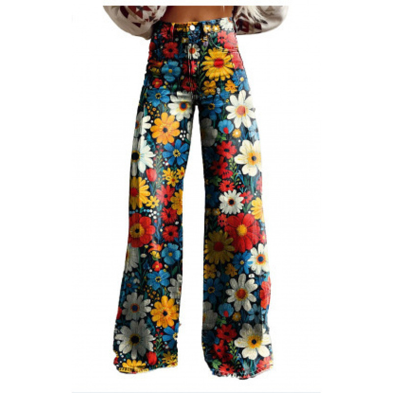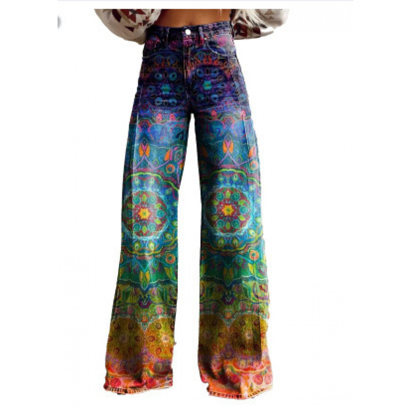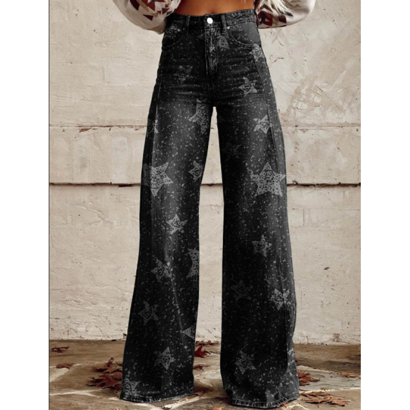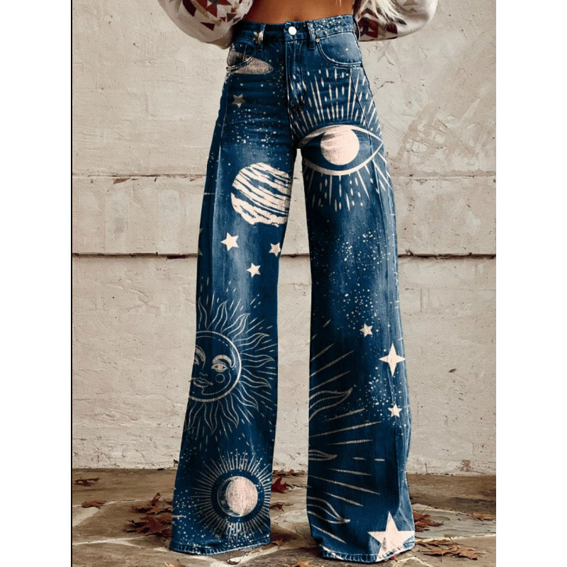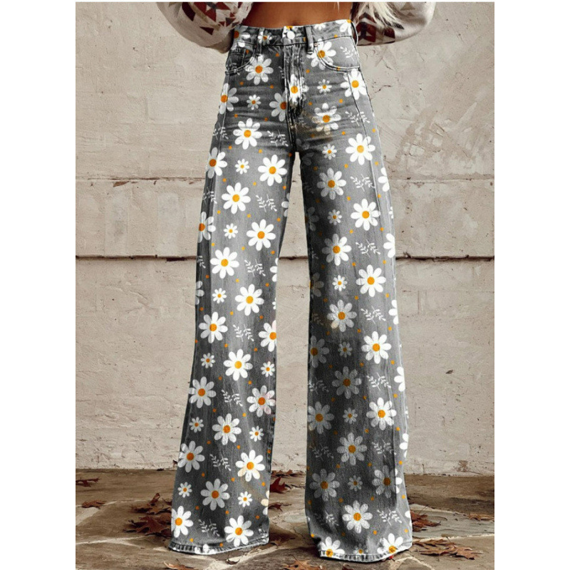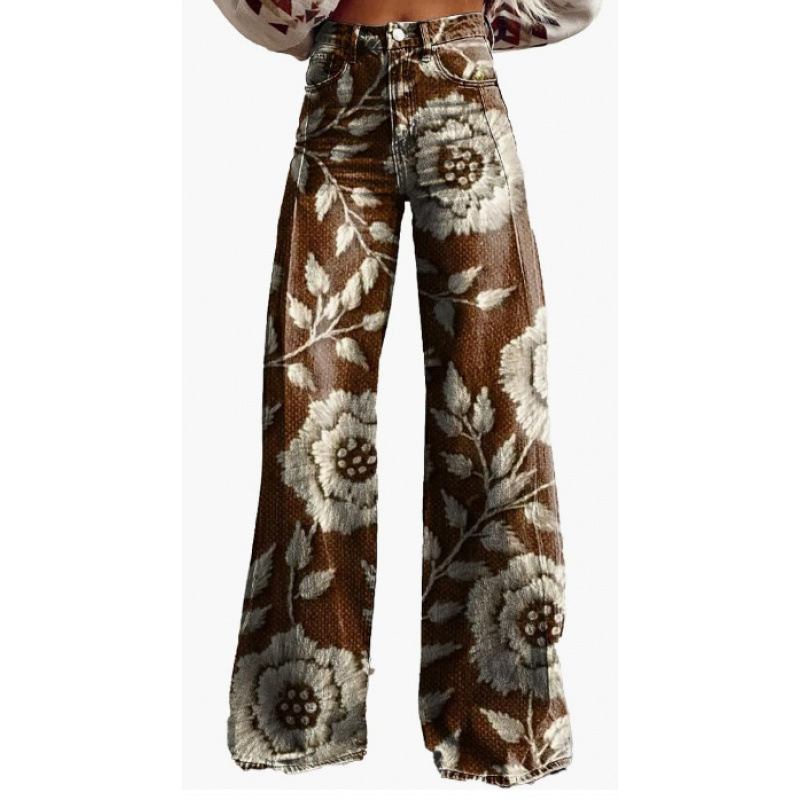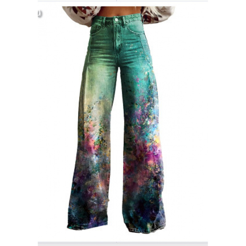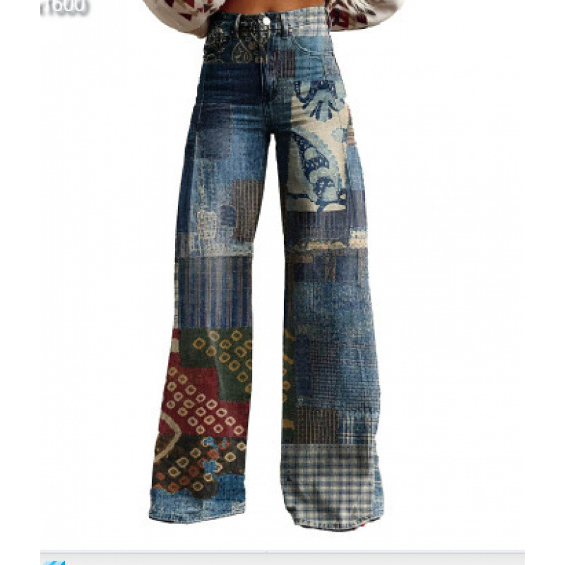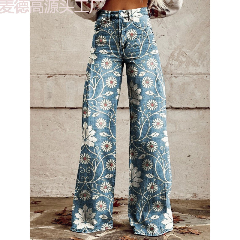 Главная страница > Женские широкие брюки больших размеров для внешней торговли, новые расклешенные брюки с 3D теплопередачей, длинные брюки из искусственного денима, летние тонкие брюки