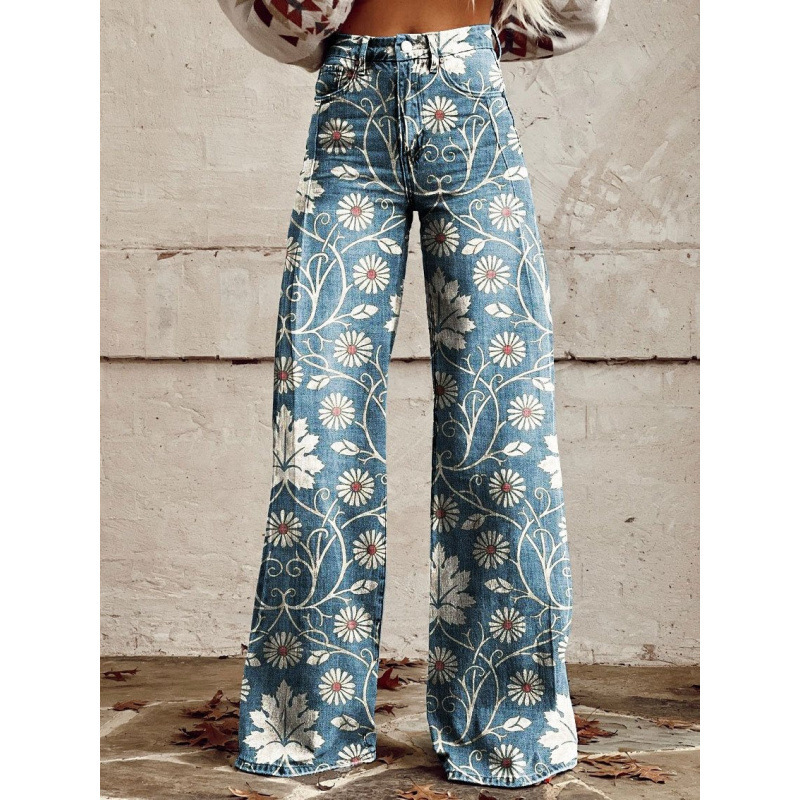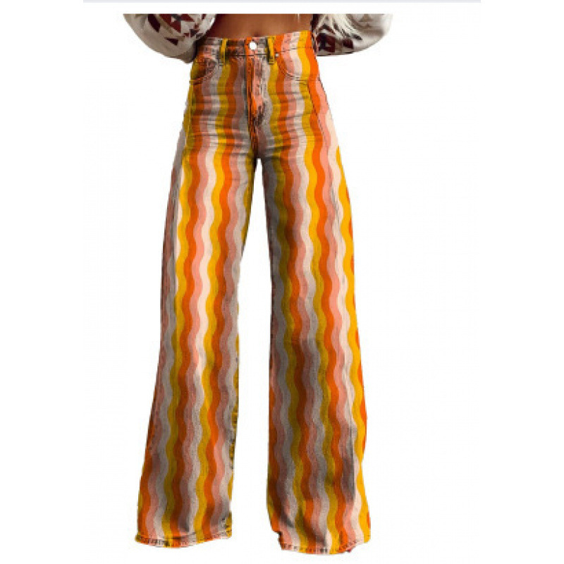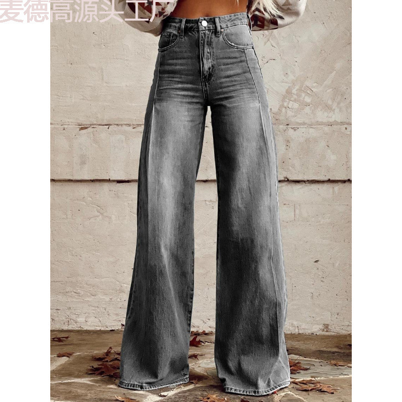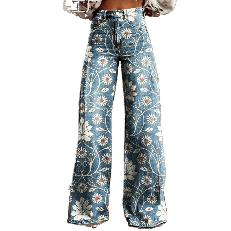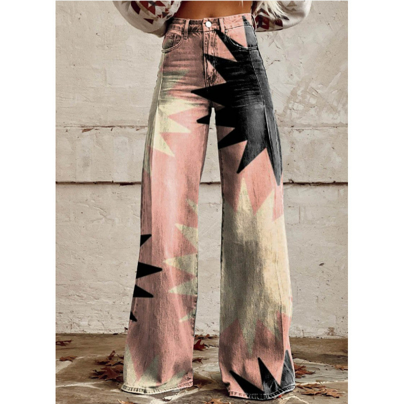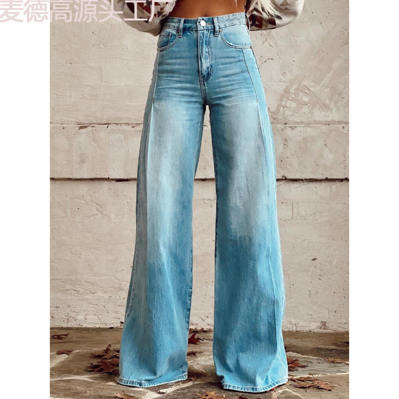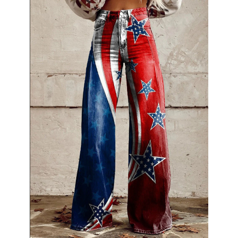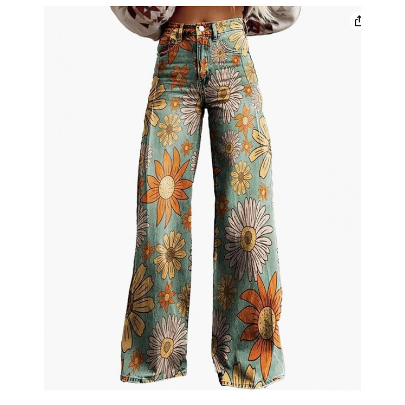 Главная страница > Женские широкие брюки больших размеров для внешней торговли, новые расклешенные брюки с 3D теплопередачей, длинные брюки из искусственного денима, летние тонкие брюки
