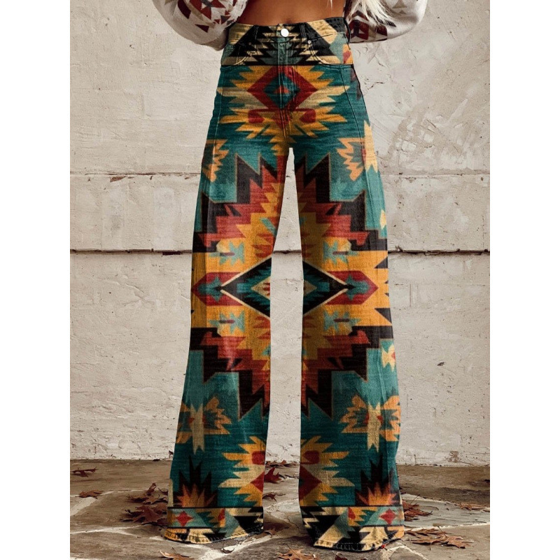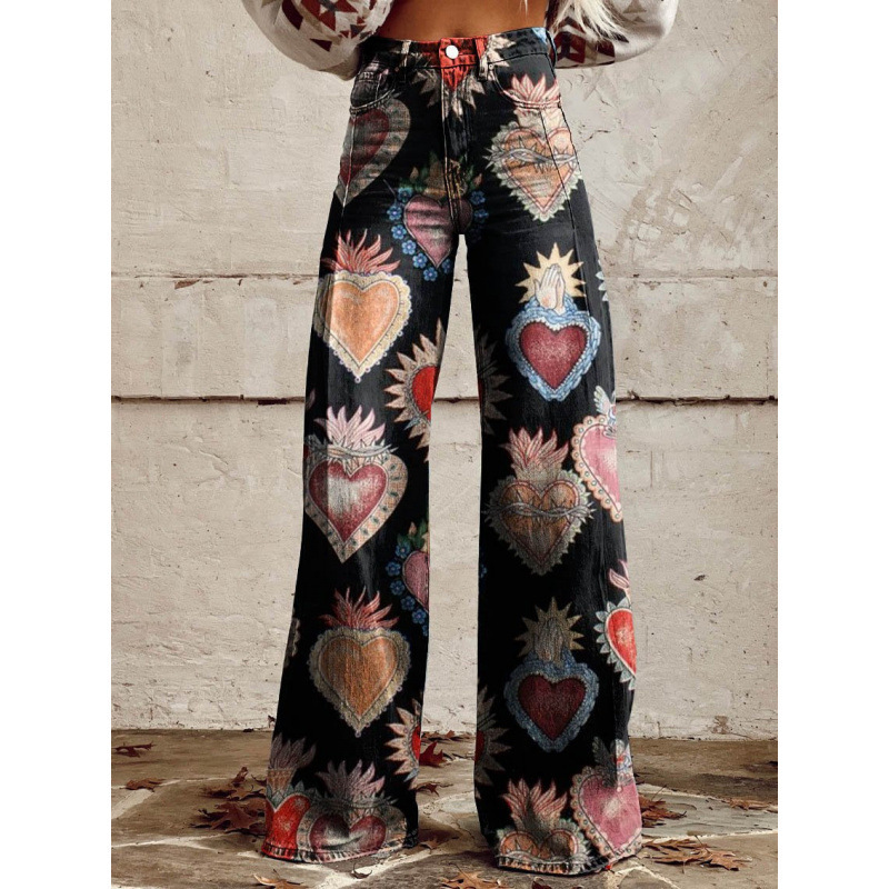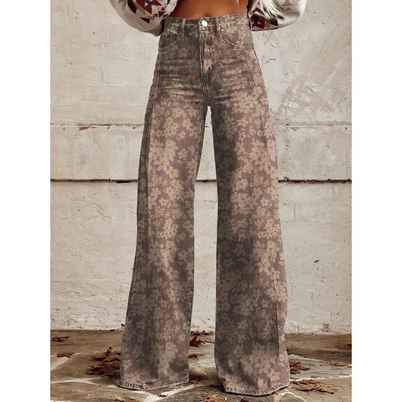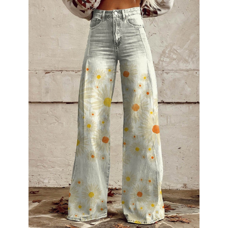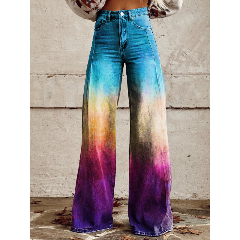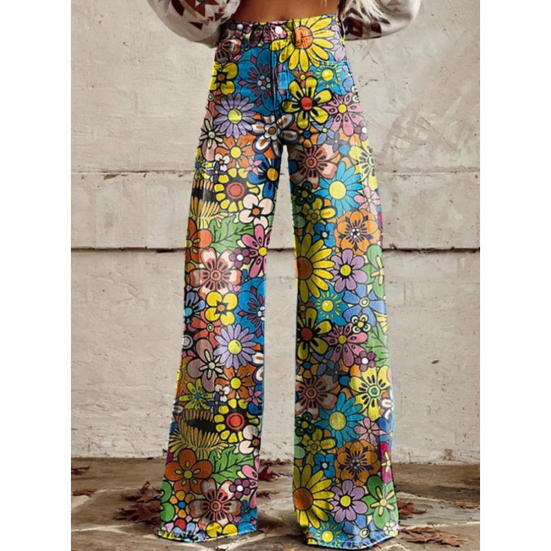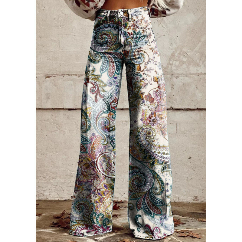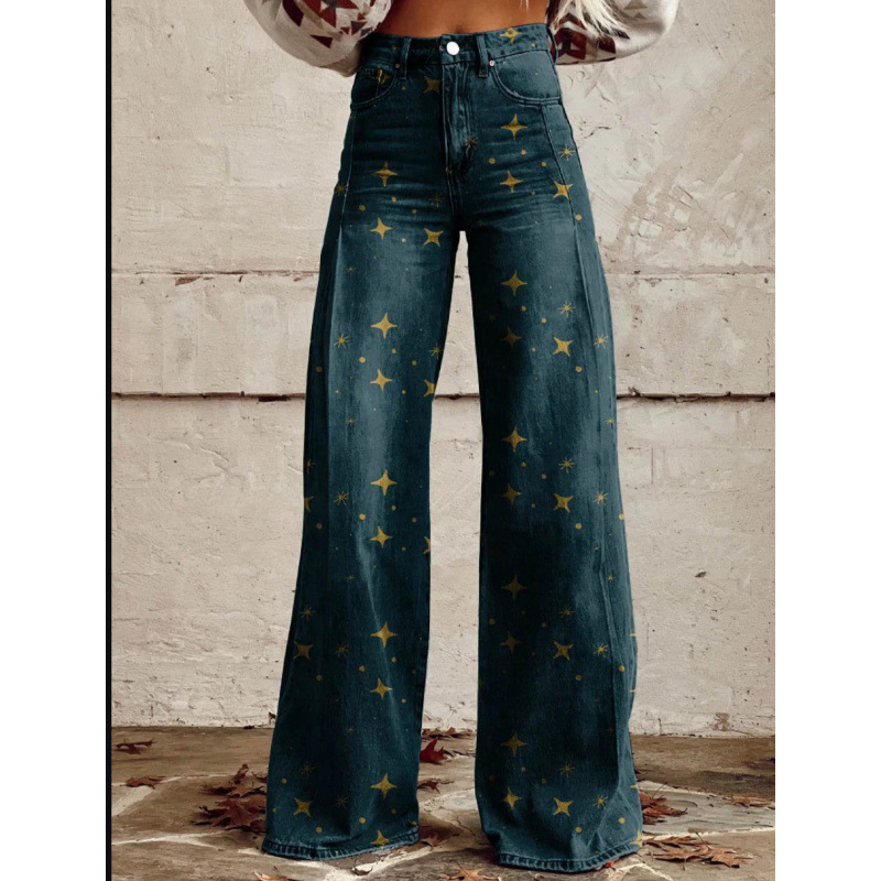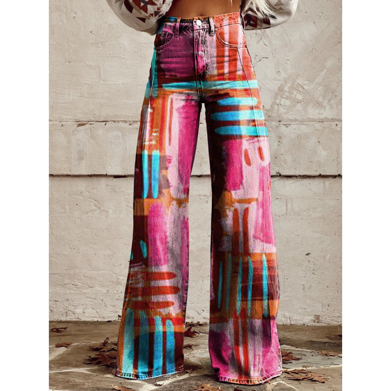 Главная страница > Женские широкие брюки больших размеров для внешней торговли, новые расклешенные брюки с 3D теплопередачей, длинные брюки из искусственного денима, летние тонкие брюки