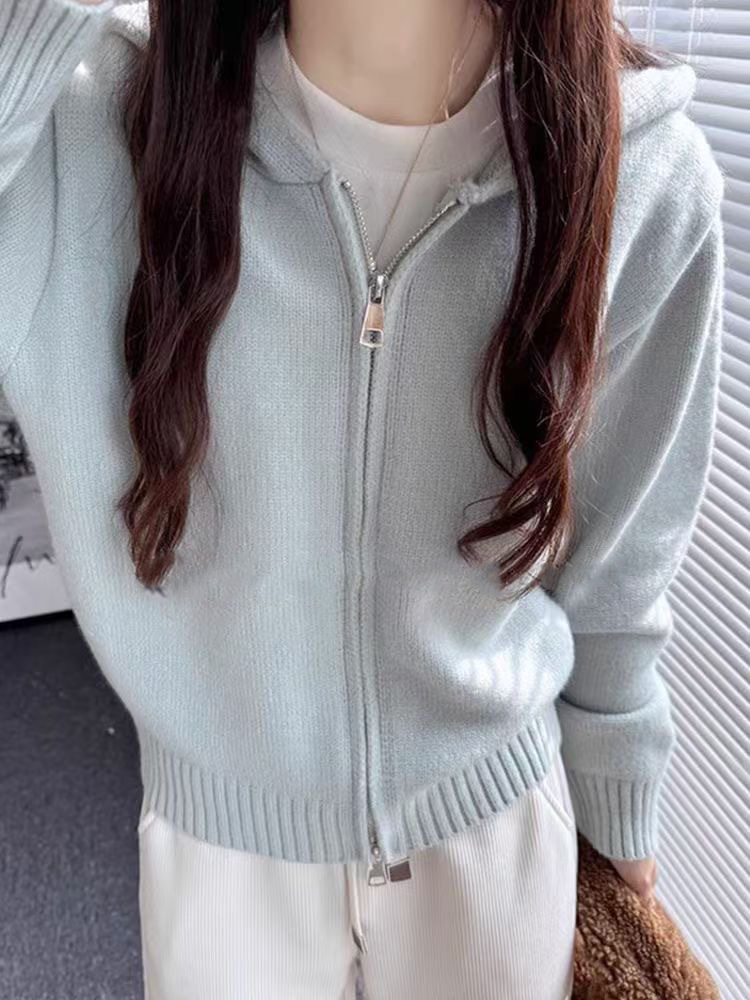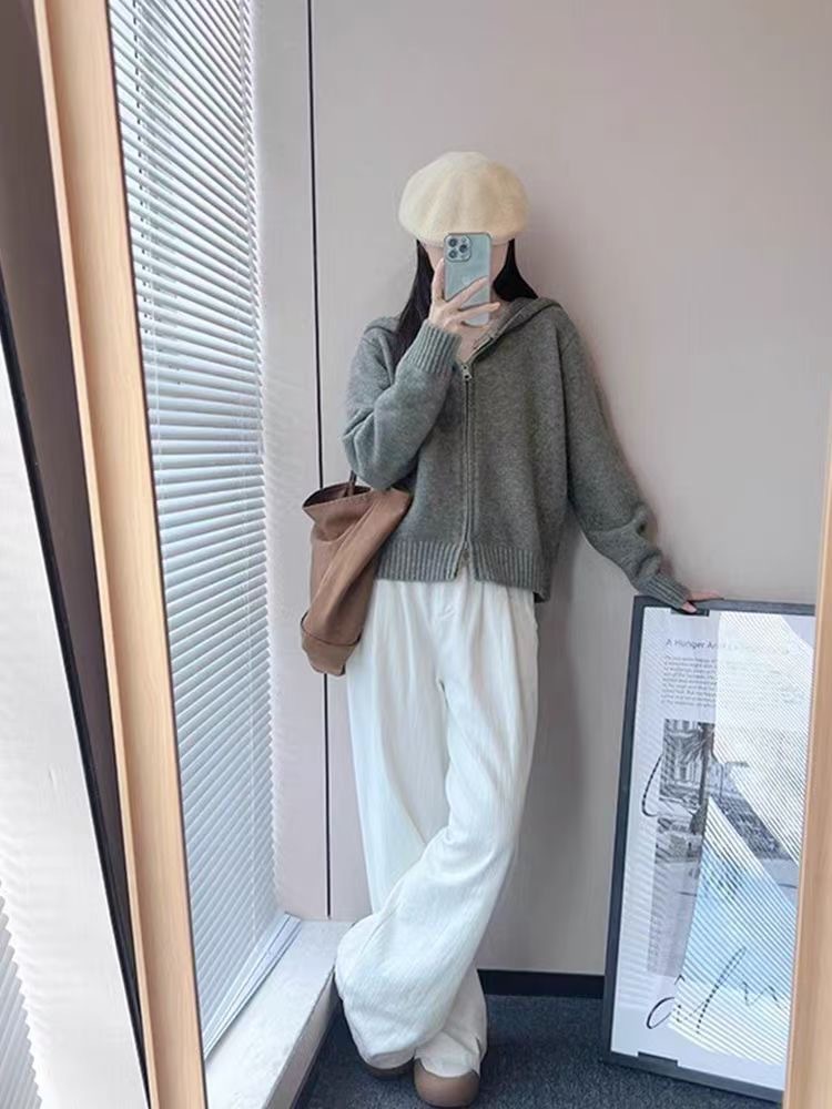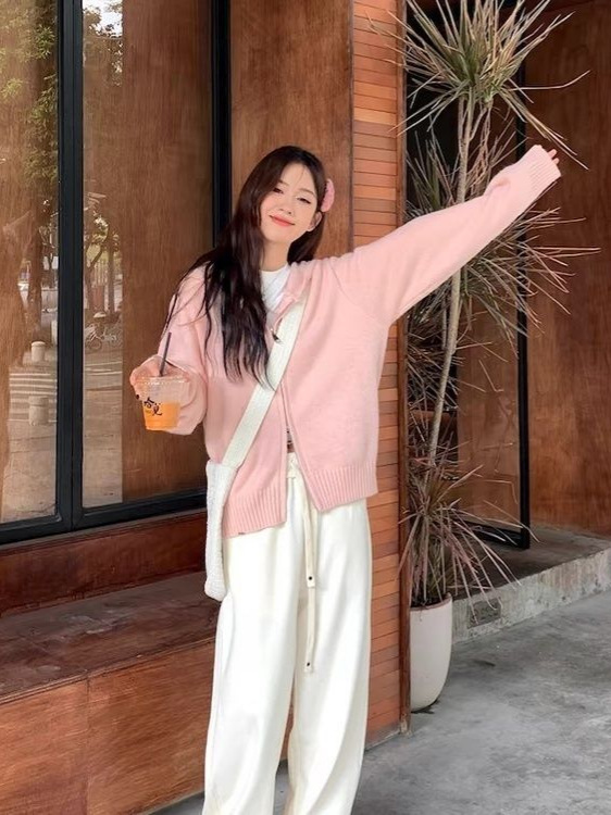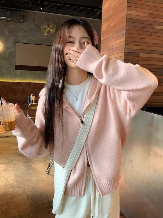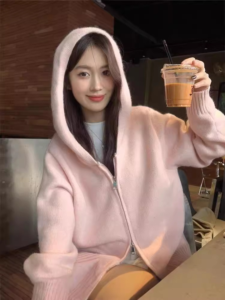Главная страница > 2024 новый стиль ранней осени розовый двойной молнии с капюшоном свитер с длинными рукавами женский свободный мода минус возраст свитер пальто прилив