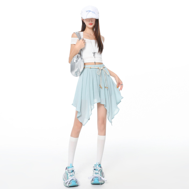 Главная страница > Шифоновая юбка трапециевидной формы неправильной формы, женская летняя новинка 2025 года, короткая юбка с высокой талией, полуюбка, юбка-зонтик, модные брюки
