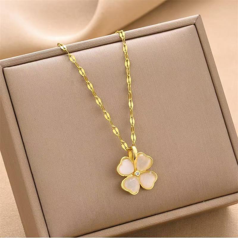 Главная страница > Ожерелье в стиле инфлюенсера TikTok для женщин, в стиле легкой роскоши, нишевый дизайн, модная универсальная цепочка на ключицу с подвеской в виде четырехлистного цветка.