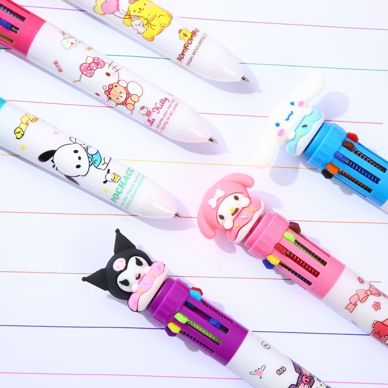 Sanrio мультфильм десять цветов шариковая ручка ins многофункциональный милый студент ручная ручная ручная ручка маркер гелевая ручка оптом