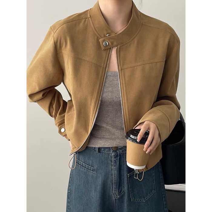 [Замша] Американский воротник небольшой ароматный ветер куртка женская трансграничная новая куртка мотоциклетная одежда короткая бейсбольная одежда