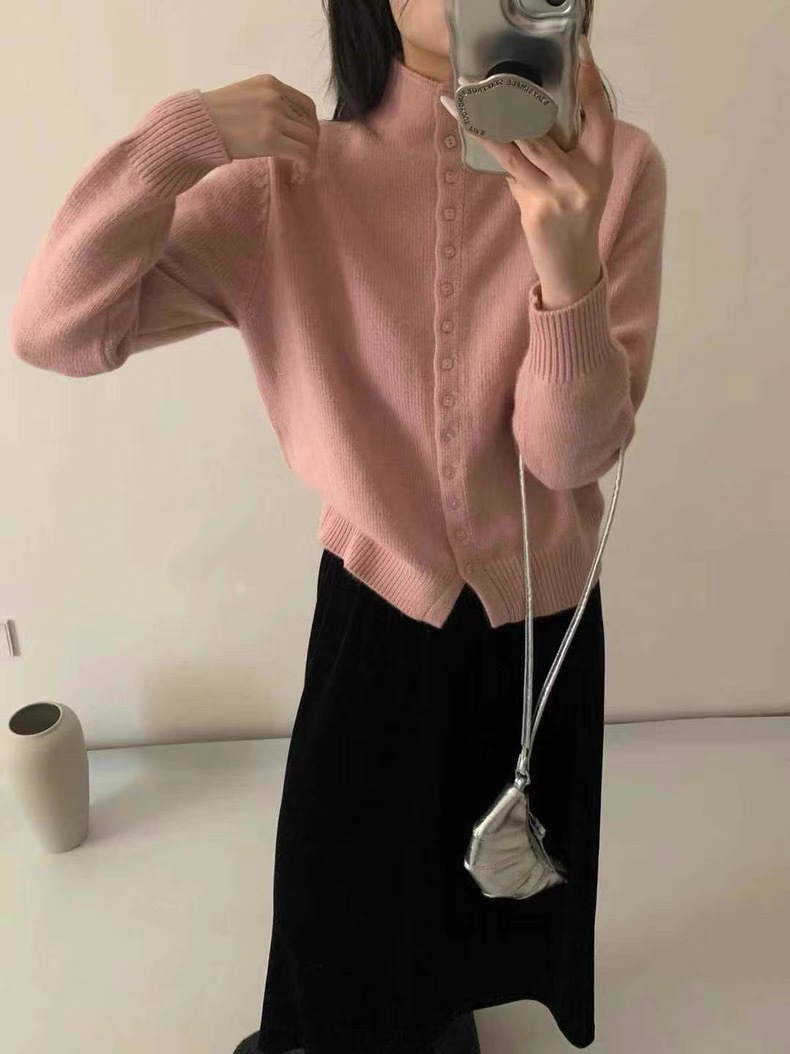 Главная страница > Стильный вязаный кардиган с квадратными пуговицами и полугольфом, модный универсальный весенний новый свитер для женщин