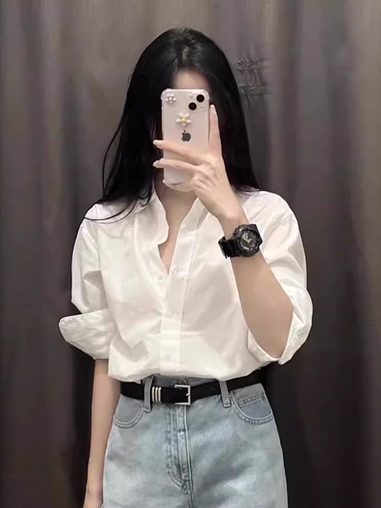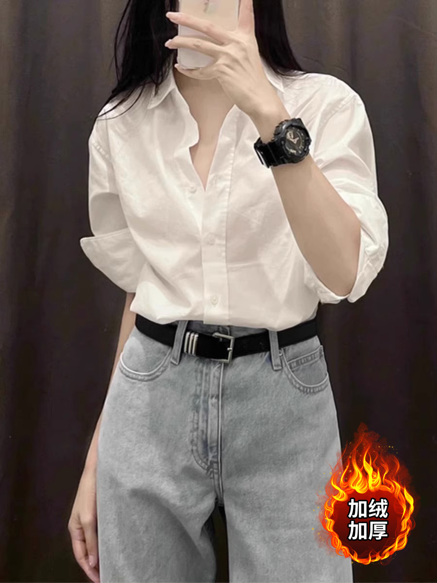 Главная страница > Белая хлопчатобумажная рубашка с длинными рукавами весенняя и осенняя женская повседневная женщина маленький человек с нижней топом темпераментная пригородная рубашка