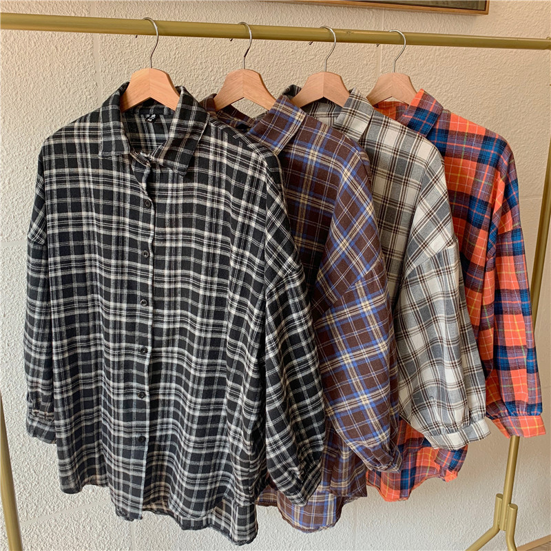 Главная страница > Женская рубашка в клетку, куртка весна-осень 2025, новый корейский дизайн, свободная рубашка, длинный рукав
