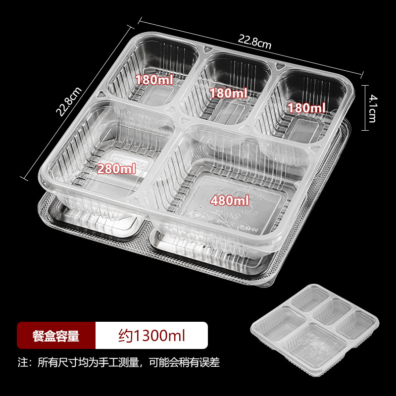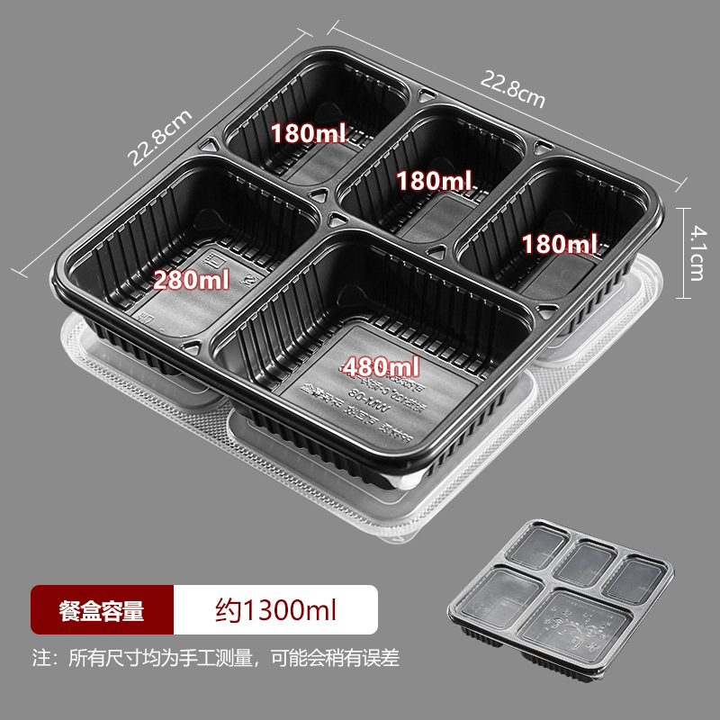 W08 квадратный 1300 мл, пять сеток, черное дно + прозрачная крышка, 200 комплектов