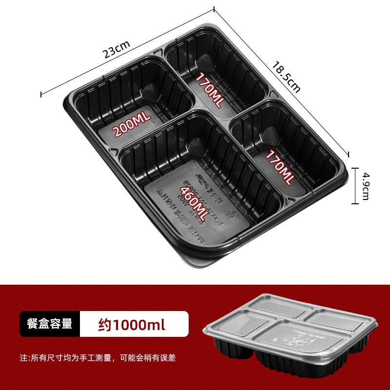 1000 мл, четыре отделения, прозрачная крышка с черным дном, 200 комплектов