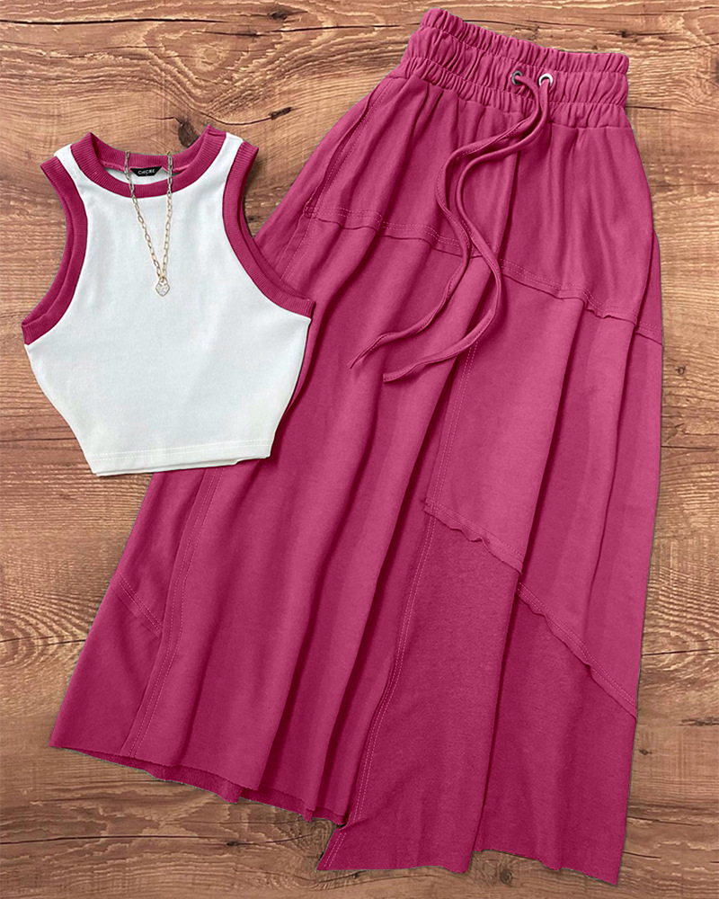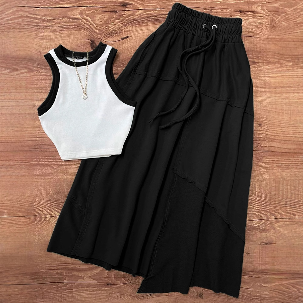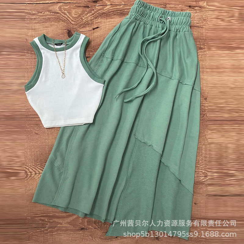 Женский жилет контрастного цвета серии ODL2023 в европейском и американском стиле + костюм с юбкой А-силуэта, комплект из 2 предметов