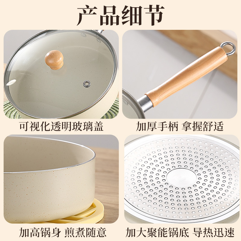 Кастрюля из медицинского камня с антипригарным покрытием, сковорода 18 см с плоским дном (без крышки)