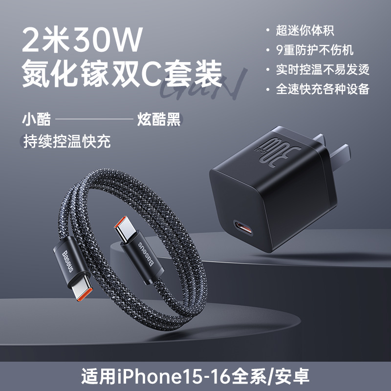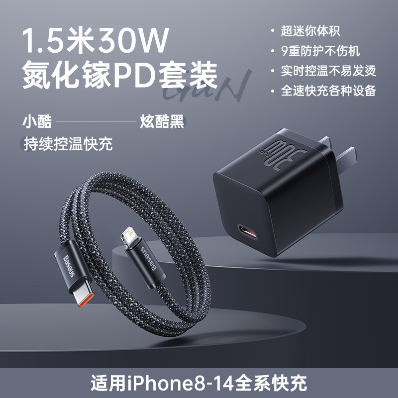 Прохладный черный | Нитрид галлия мощностью 30 Вт, подходит для Apple 8-16