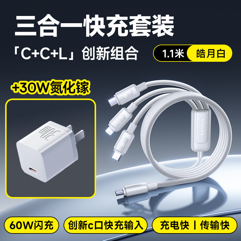 [Комплект] Apple White 30 Вт + 1.1m входа Type-C, линия «три в одном»
