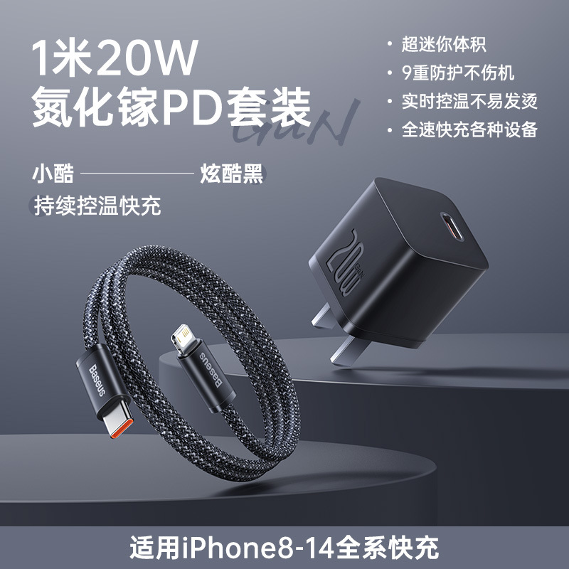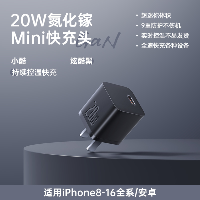 Прохладный черный | Нитрид галлия мощностью 20 Вт, подходит для Apple 8-16