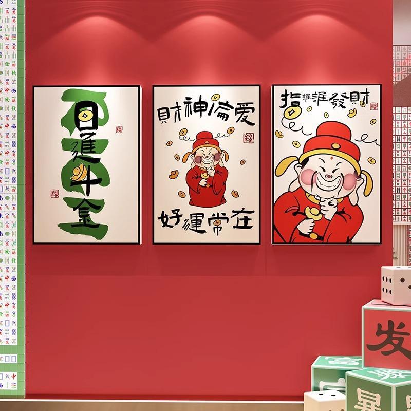 Декоративная живопись «Бог богатства» в китайском стиле, настенное искусство для шахматной и карточной комнаты, подвесная картина, привлекающая удачу, для развлечений, фреска в комнате для маджонга.