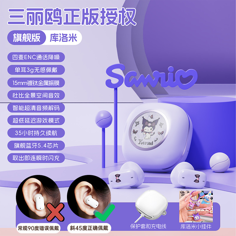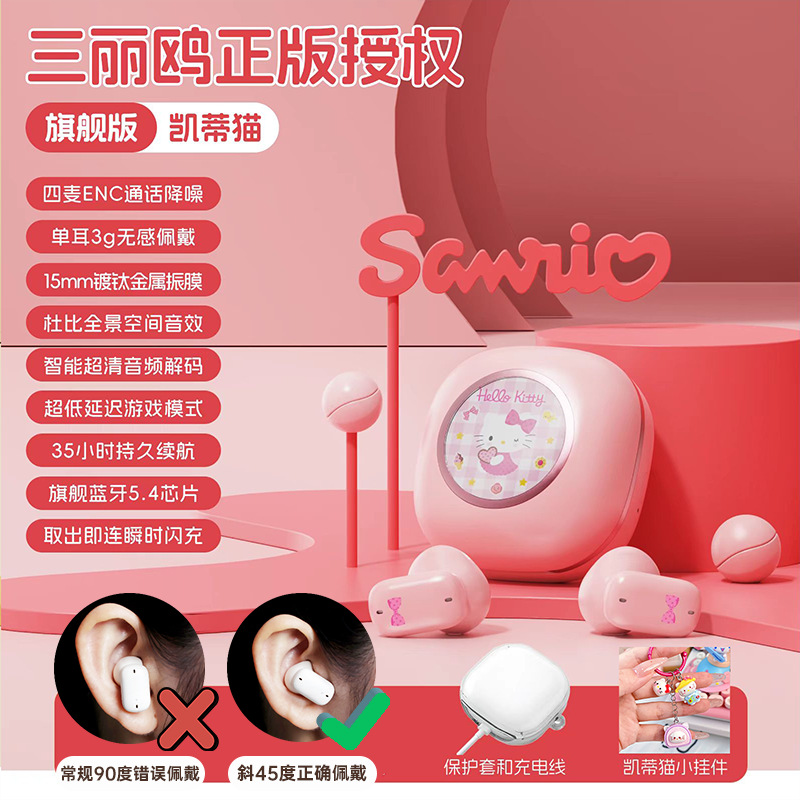 Главная страница > Новая Bluetooth-гарнитура Sanrio совместного бренда с цифровым дисплеем питания Hello Kitty Cinnamon Dog, милый и компактный градиентный свет