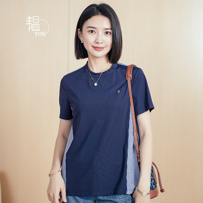 Главная страница > YUN Сшитая рубашка с круглым вырезом Летняя женская рубашка с короткими рукавами свободная дикая футболка в полоску с короткими рукавами