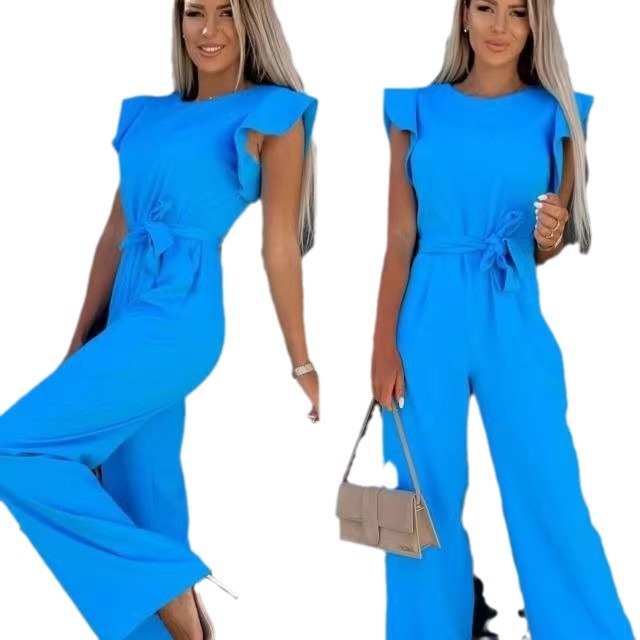 Главная страница > 2023 фабрика в наличии Европейский и американский трансграничный Amazon Женский комбинезон на шнуровке, однотонные повседневные брюки без рукавов с рюшами