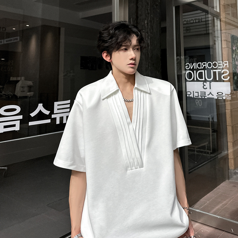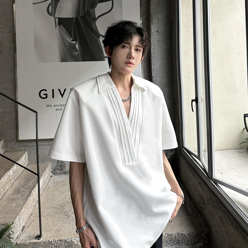 Главная страница > Новый летний американский уличный стиль с подплечниками, глубоким V-образным вырезом, однотонная мужская простая универсальная футболка, доступная для оптовой продажи.