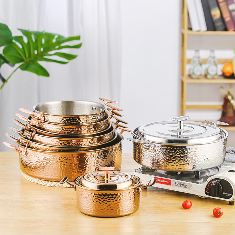 Большой объемный горшок для супа из трёхслойной кованой стали, с золотым покрытием, для индукционных плит, из нержавеющей стали 304.