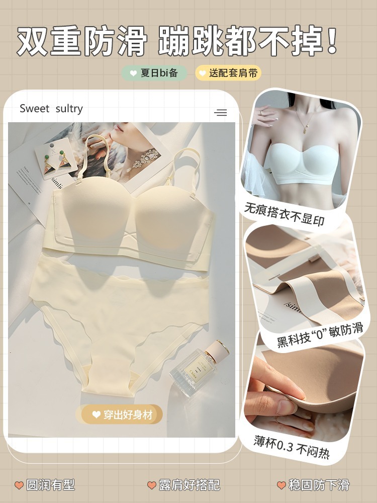 Главная страница > Летнее тонкое бесшовное нижнее белье без бретелек, невидимое нескользящее нижнее белье, женский бюстгальтер пуш-ап с маленькой грудью, Большой Анти-провисающий бюстгальтер