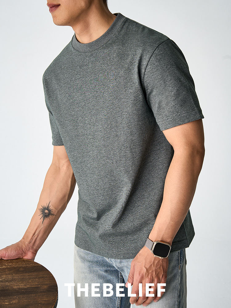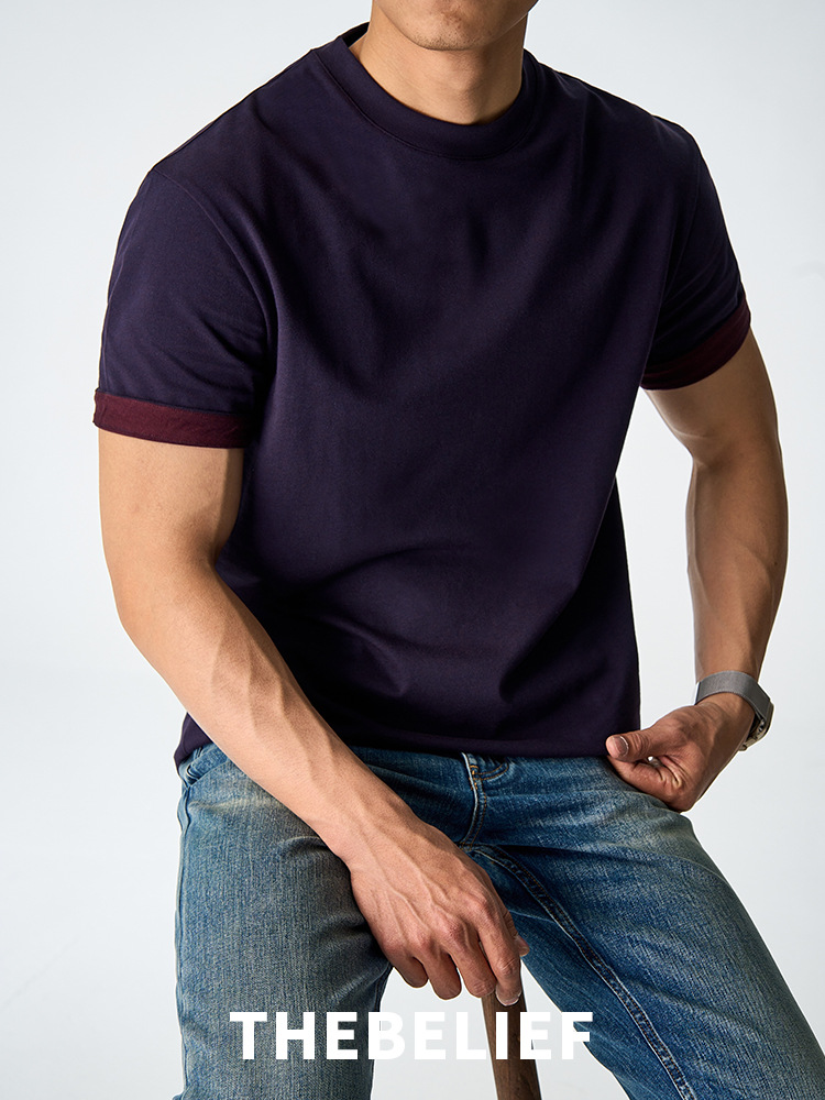 Главная страница > THEBELIEF Летний тяжелый Синьцзянский длинный бархатный хлопок повседневная футболка с короткими рукавами мужской круглый воротник
