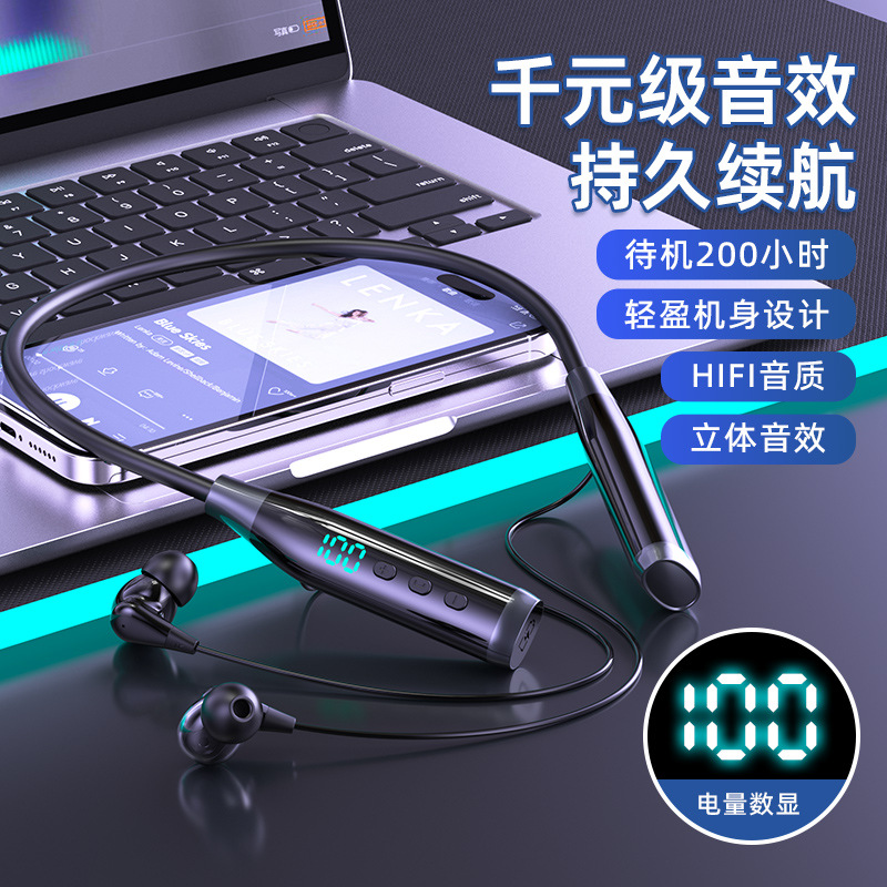 Шея шея с двойным кольцом 4 динамика беспроводной цифровой дисплей TF может быть подключен большой заряд, сверхдлинная резервная гарнитура Bluetooth