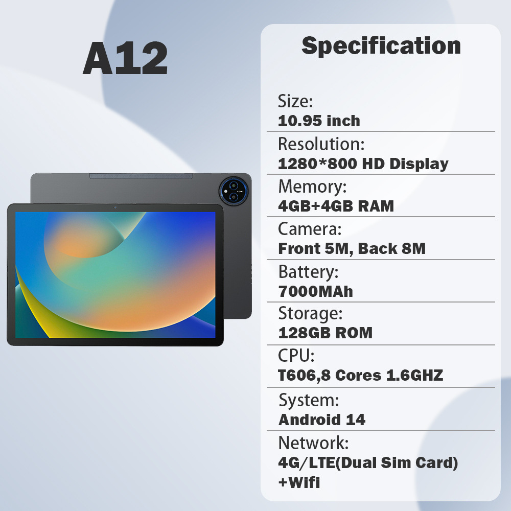 Планшет 10.95inch года, 8 ГБ+128 ГБ, Android, SIM-карта, Wi-Fi, офисный бизнес-планшет, компьютер, 4G, звонки