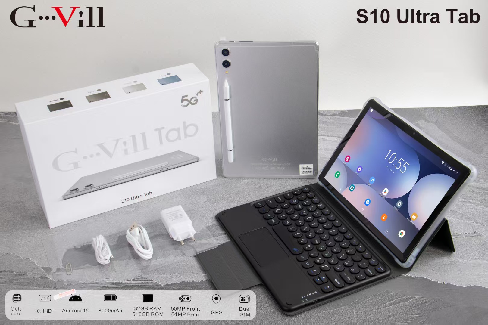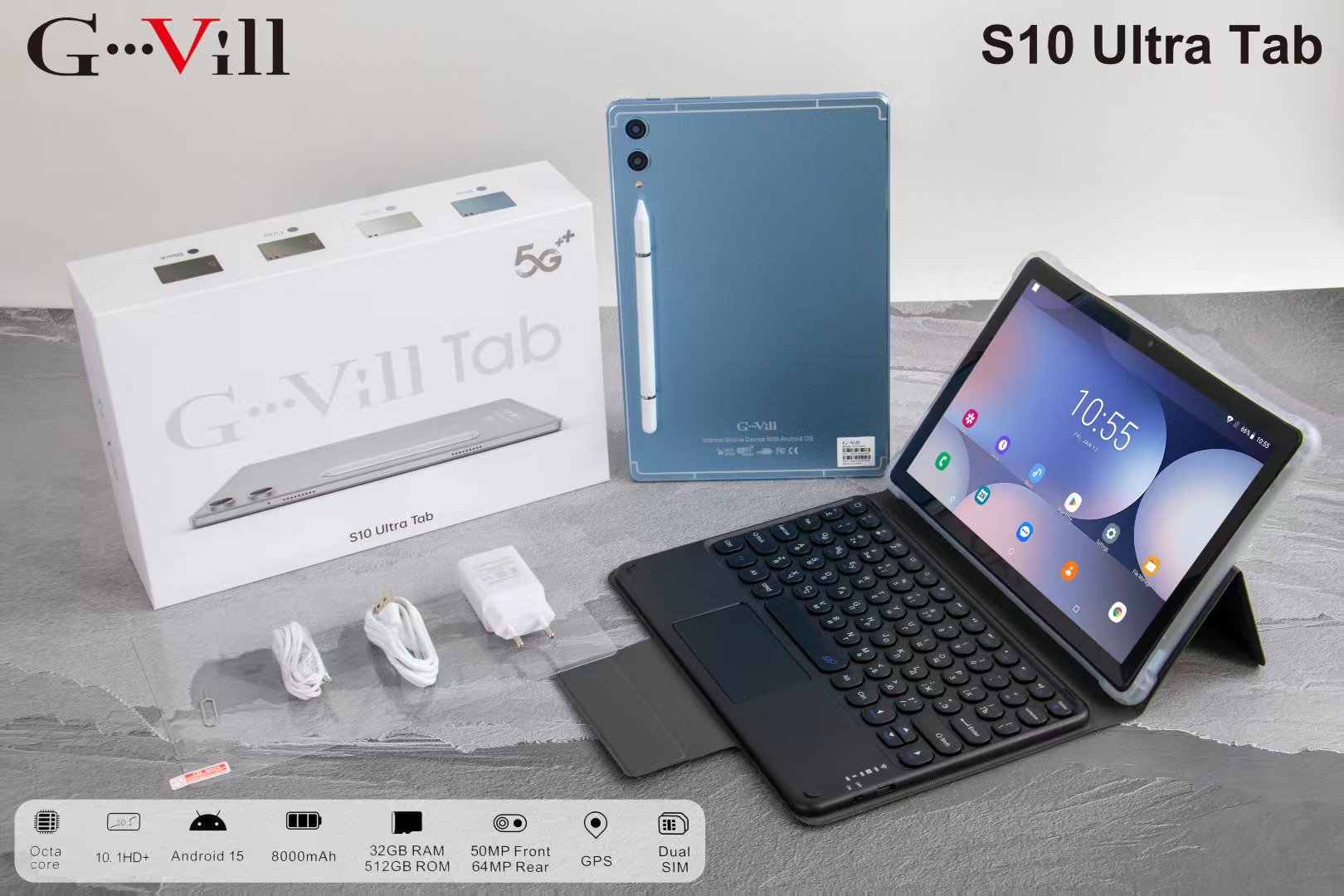 Главная страница > Планшет Cross-border G...Vill S10 Android 10.1 дюйма с возможностью звонков, клавиатурой и Wi-Fi