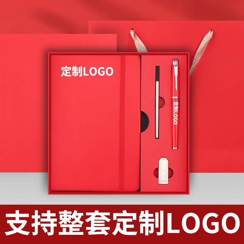 Китайский красный + ручка + стержень + U-диск + подарочная коробка