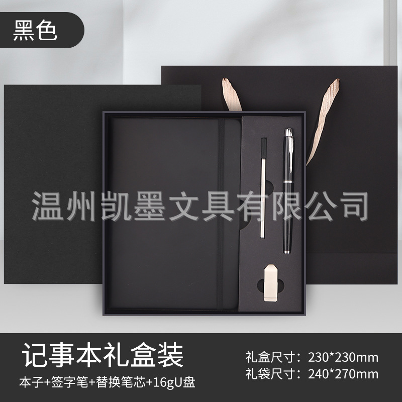 Деловой черный+ручка+заправка+U-диск+подарочный набор