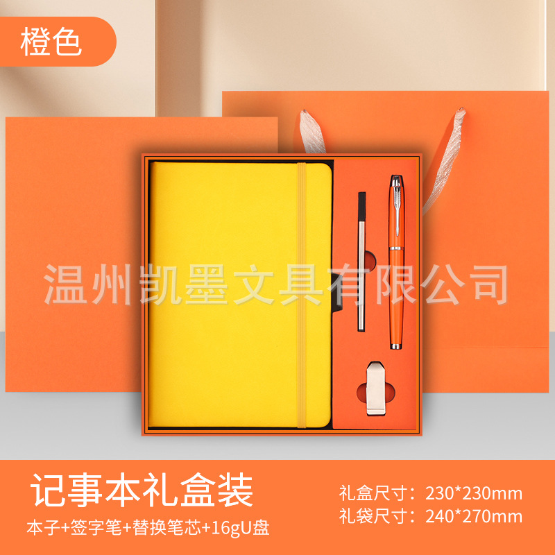 Яркий оранжевый + ручка + стержень + USB-накопитель + подарочный набор