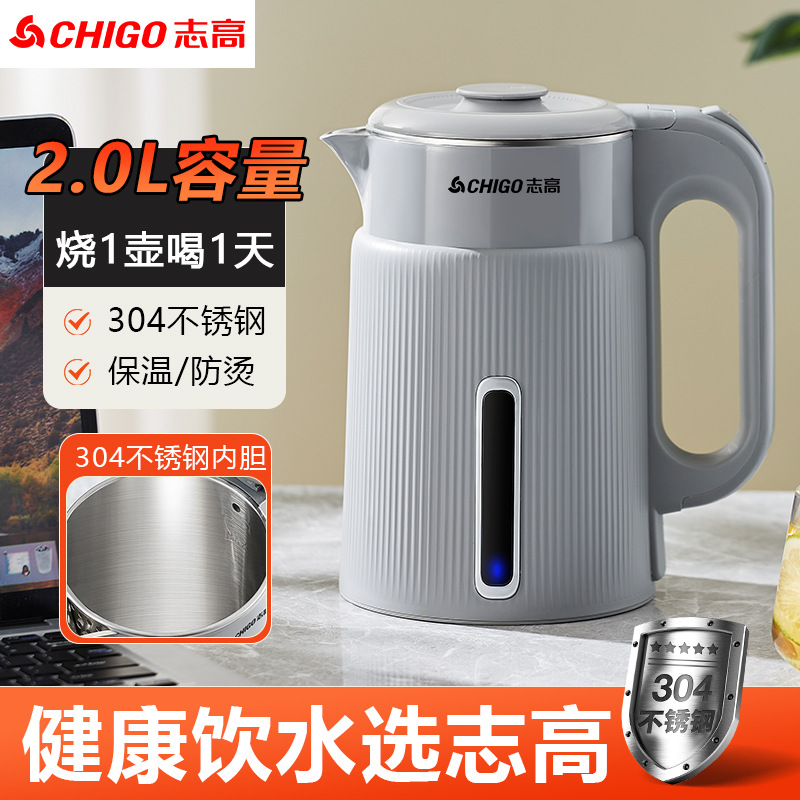 Электрический чайник Chigo 304, 2,0 л, теплоизоляция, нержавеющая сталь 304