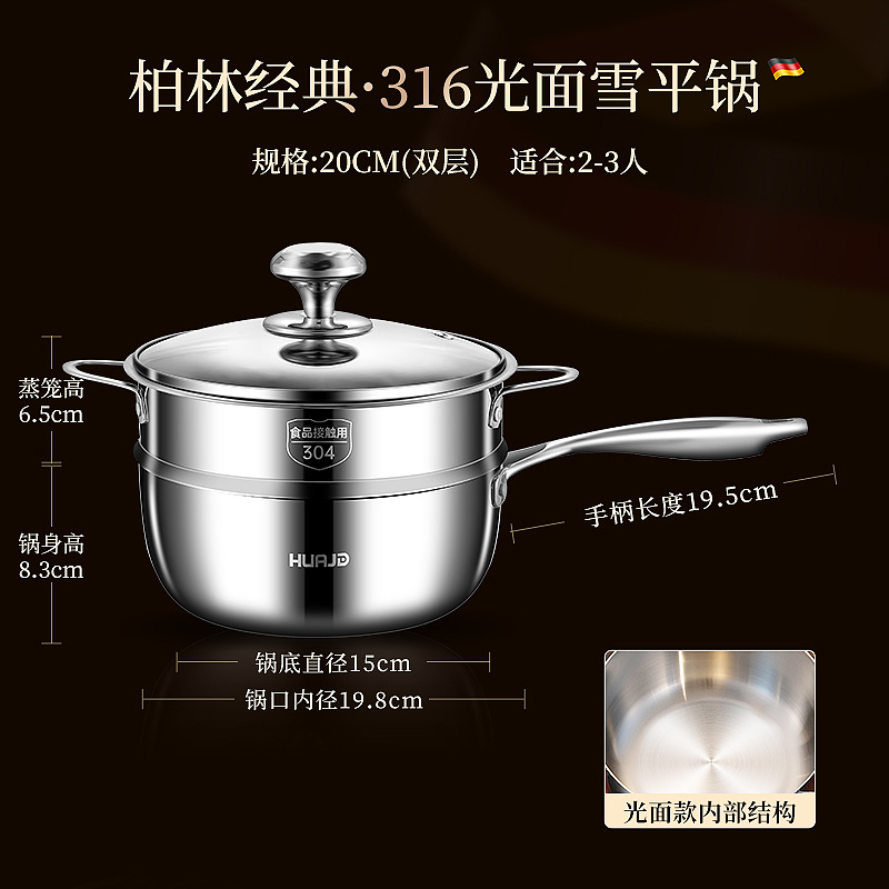 [Флагманская глянцевая модель 316 из многослойной стали] 20 см + оригинальная крышка кастрюли + пароварка 304
