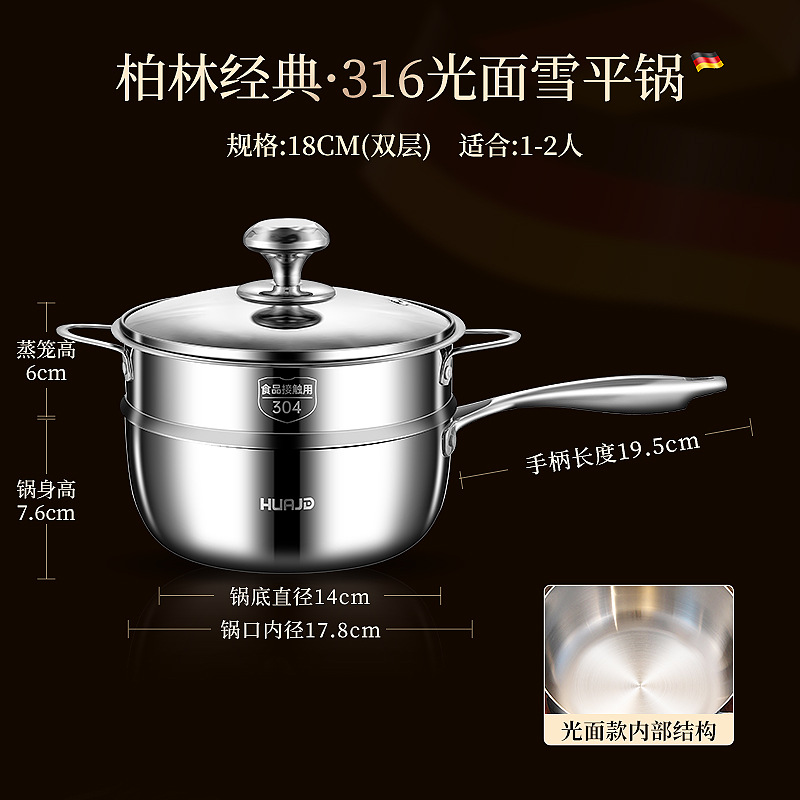 [Флагманская глянцевая модель 316 из многослойной стали] 18 см + оригинальная крышка кастрюли + пароварка 304
