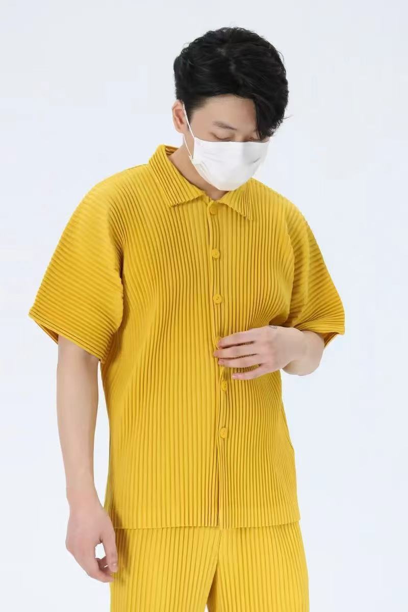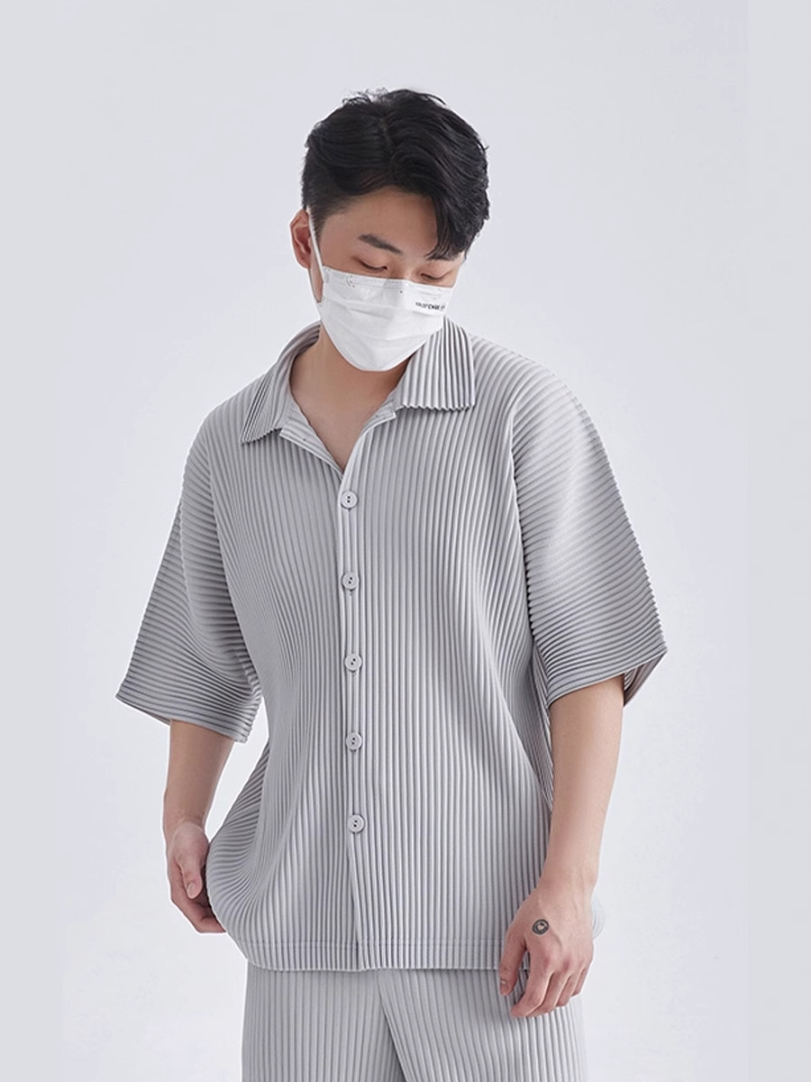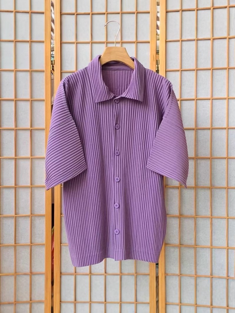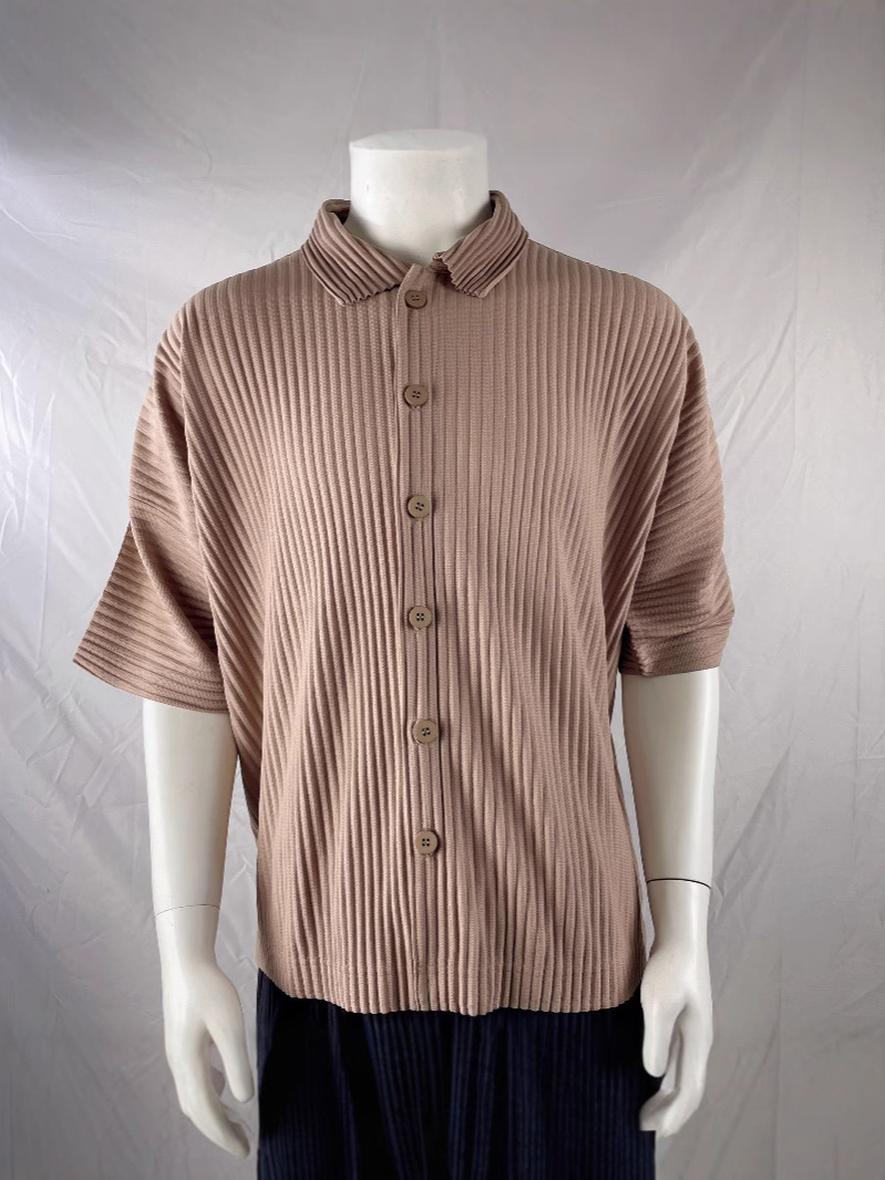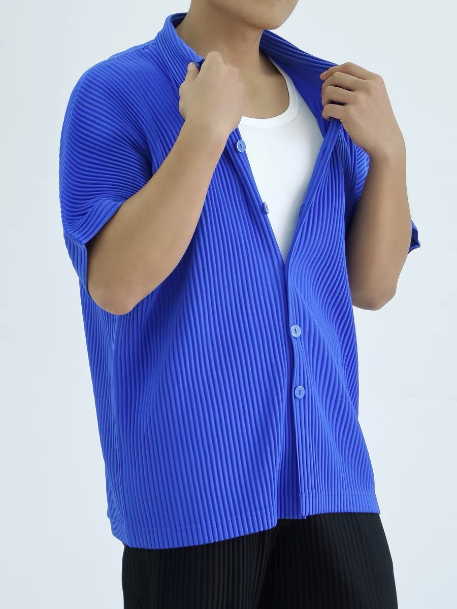 Главная страница > Плиссированная рубашка с короткими рукавами в стиле Мияке, мужской топ с короткими рукавами, летняя тонкая свободная повседневная куртка JJ122