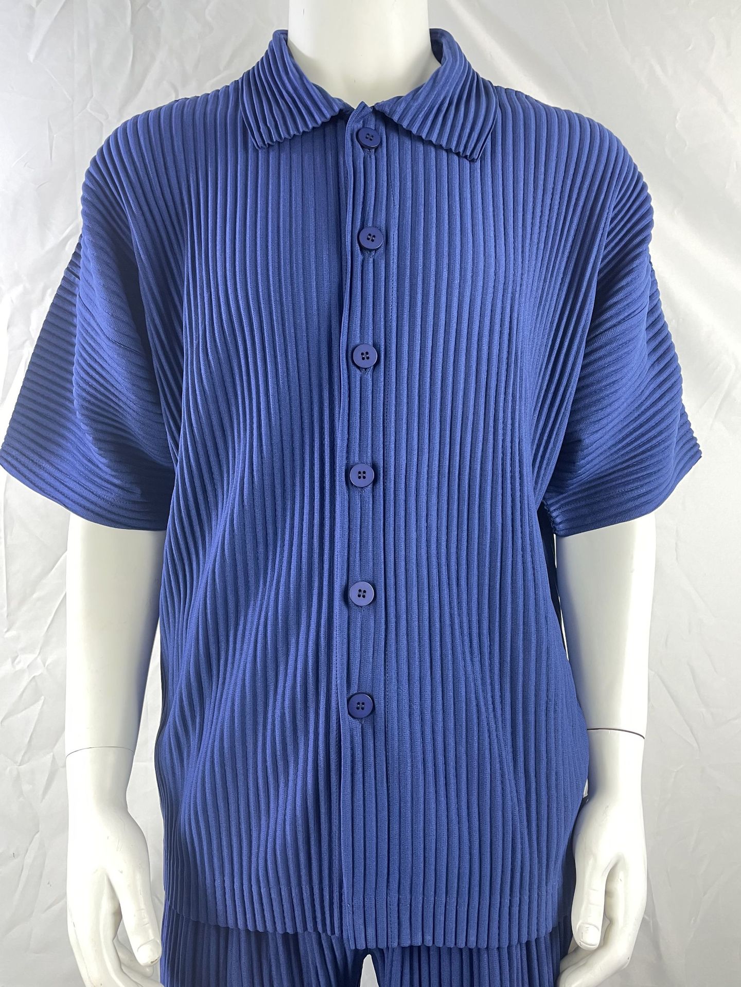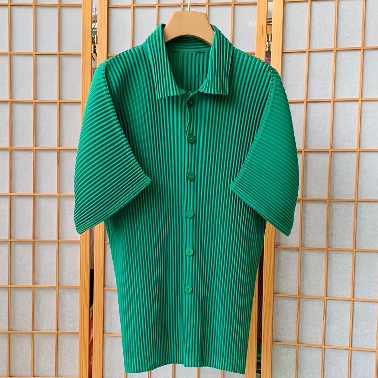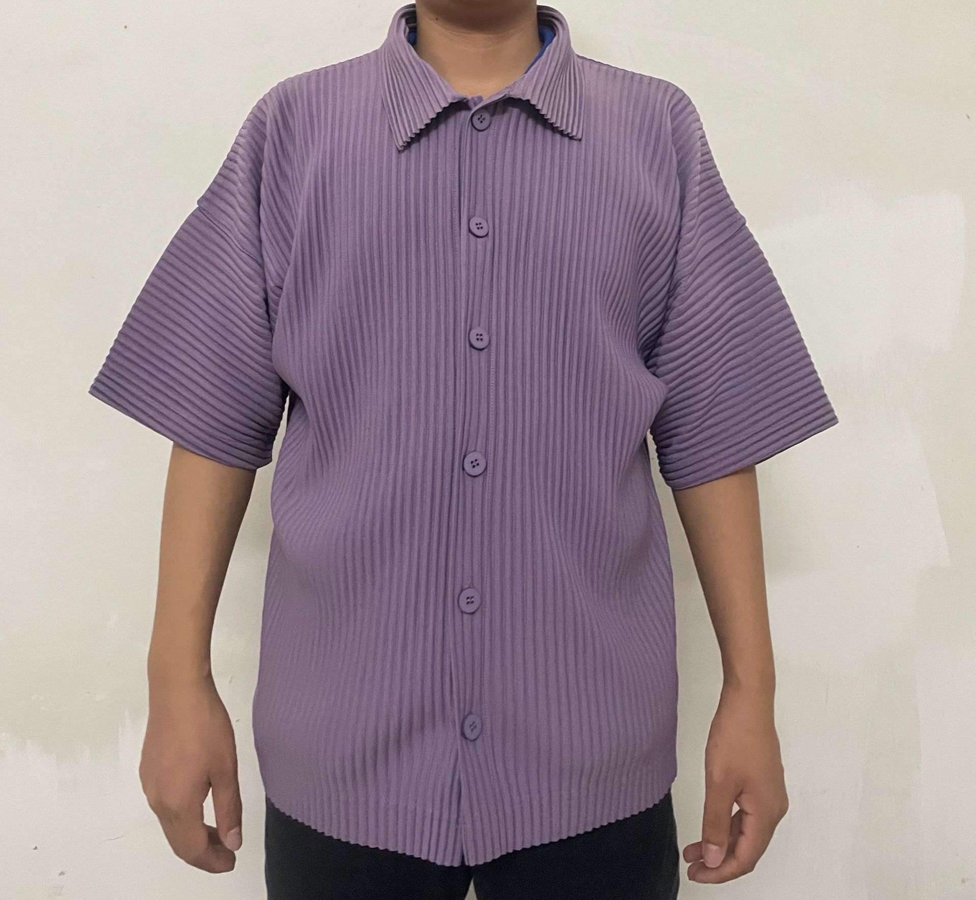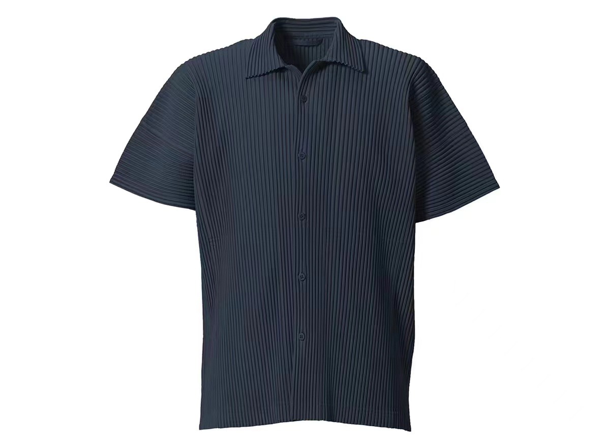 Главная страница > Плиссированная рубашка с короткими рукавами в стиле Мияке, мужской топ с короткими рукавами, летняя тонкая свободная повседневная куртка JJ122
