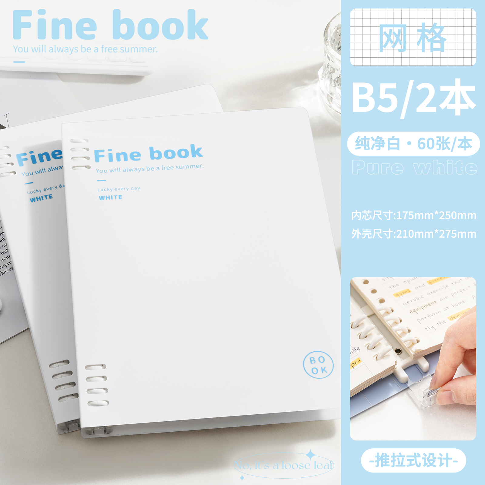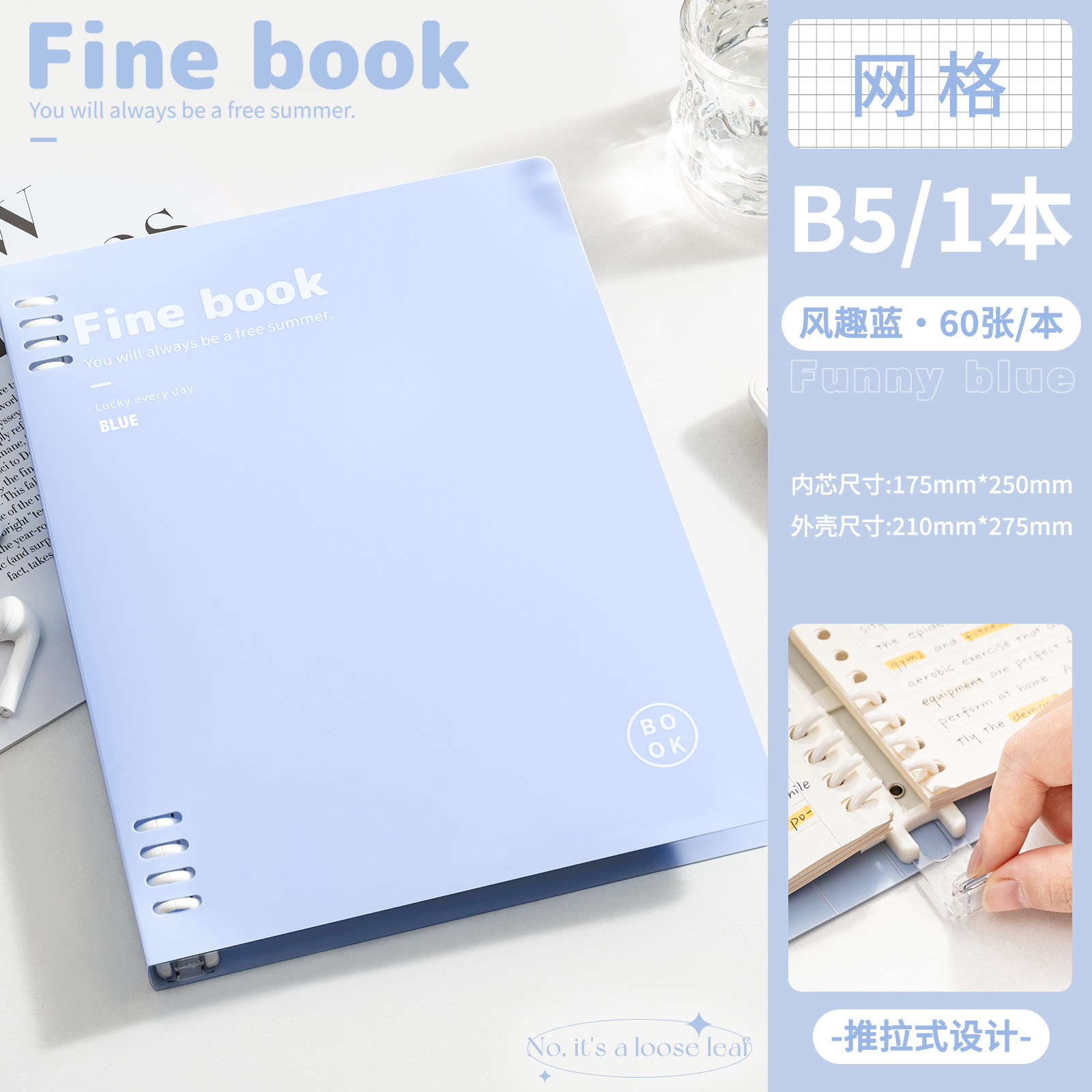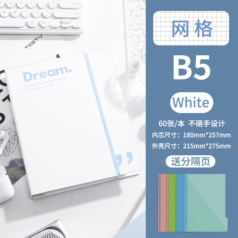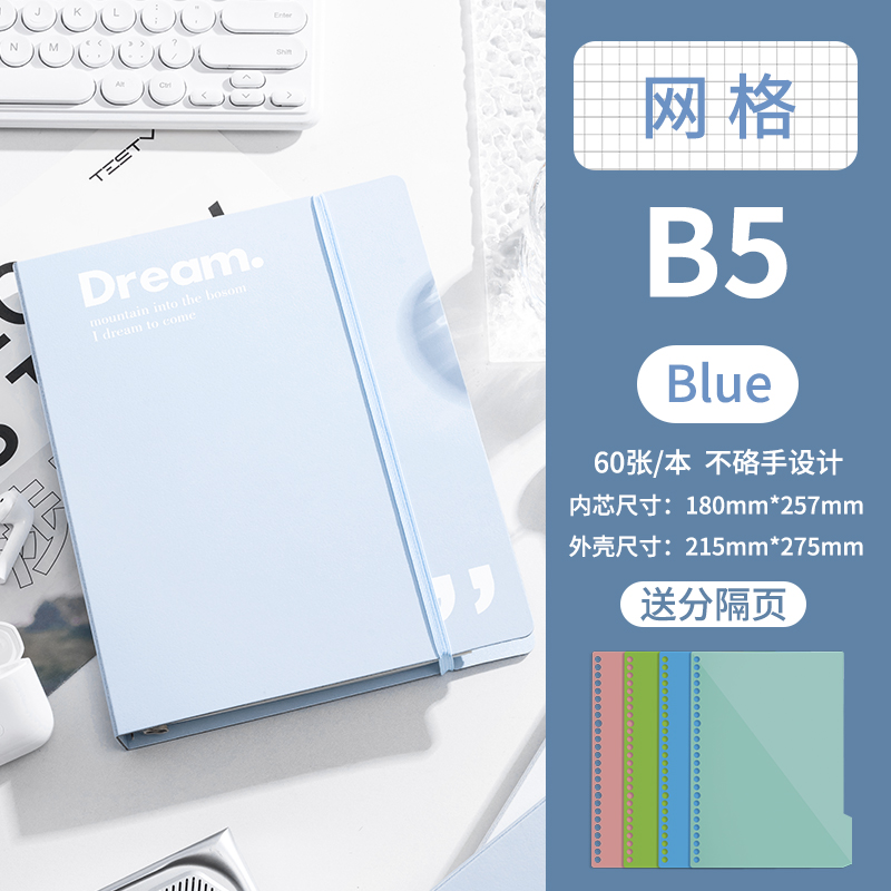 B5-сетка синяя поставляется с разделительной страницей + 5 маленьких белых ручек.