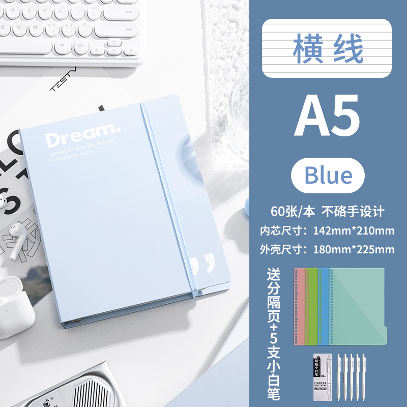 А5-горизонтальная линия Синяя поставляется с разделительной страницей + 5 маленьких белых ручек.