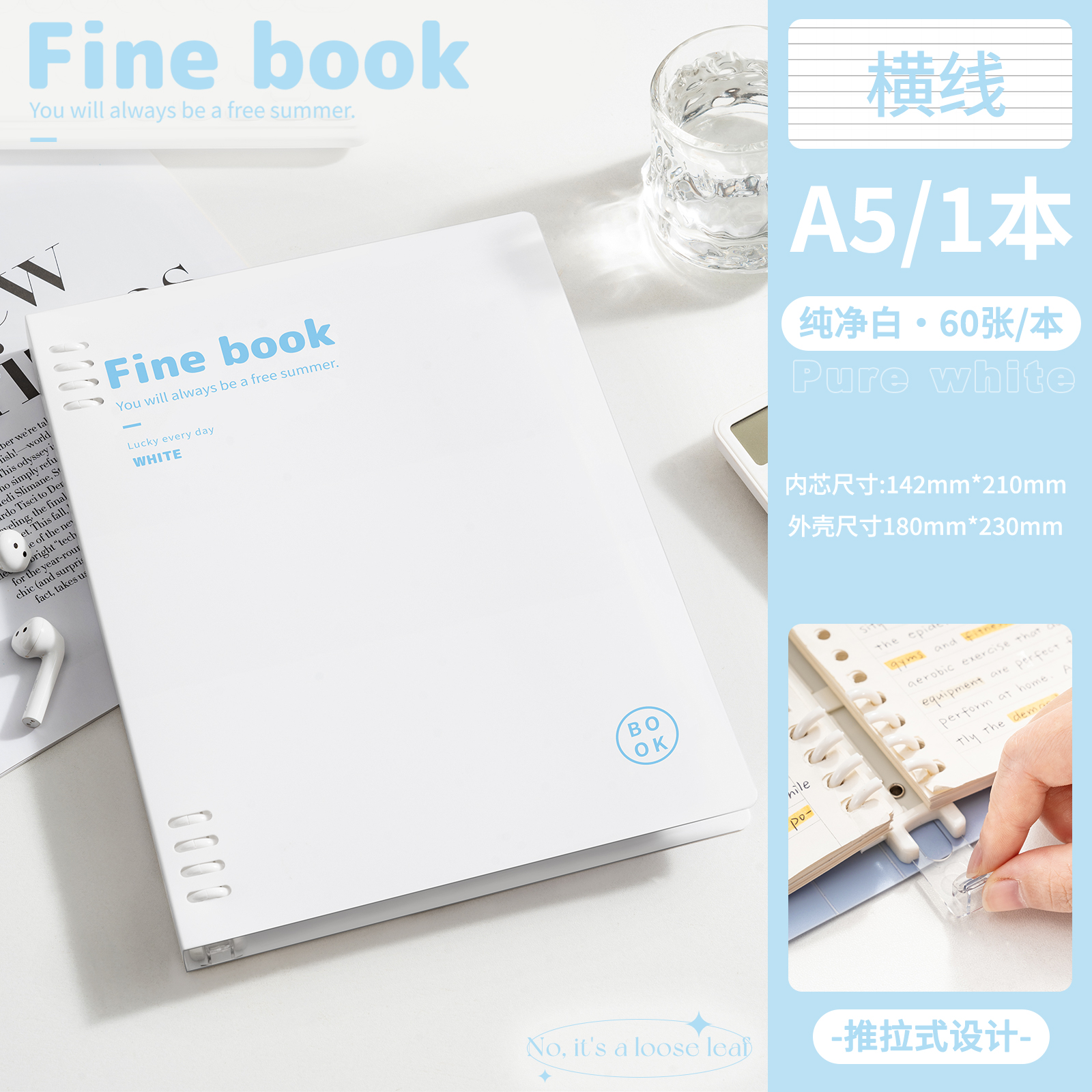 А5-горизонтальная линия Белая поставляется с разделительной страницей + 5 маленьких белых ручек.