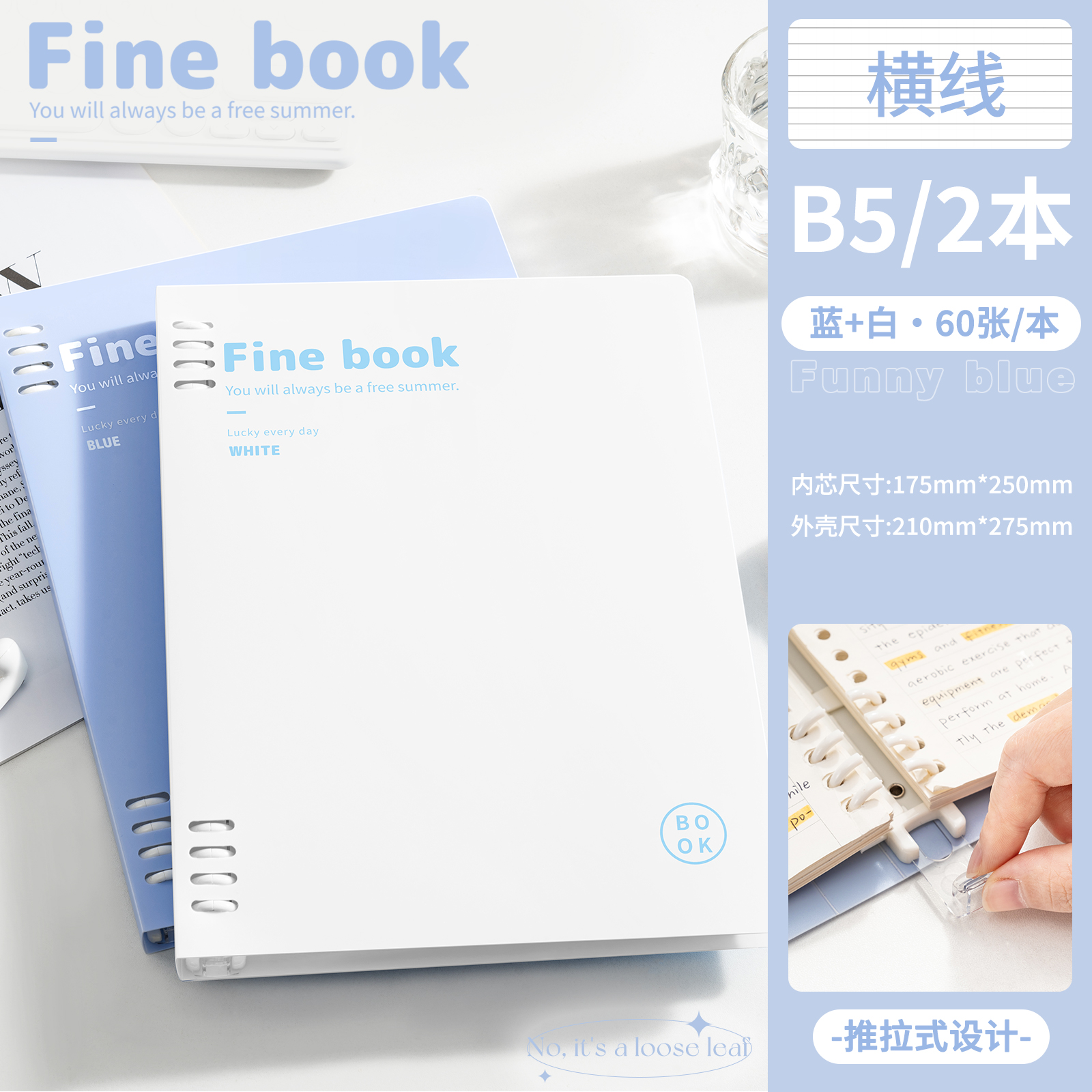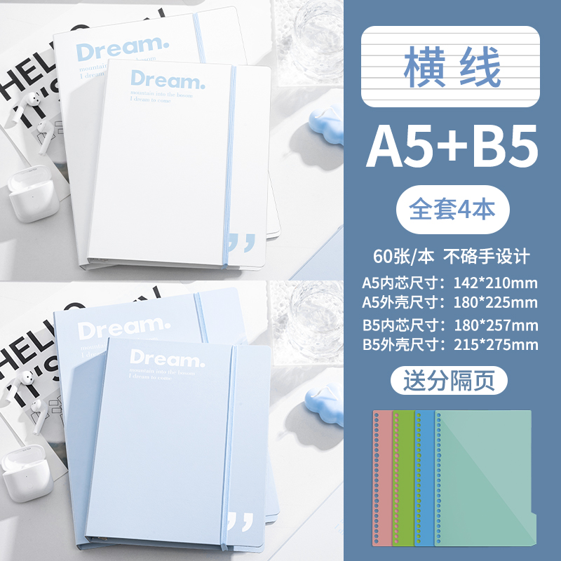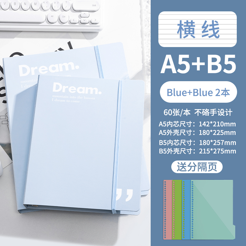 B5-горизонтальная линия синего цвета поставляется с разделительной страницей + 1 сменным сердечником горизонтальной линии.
