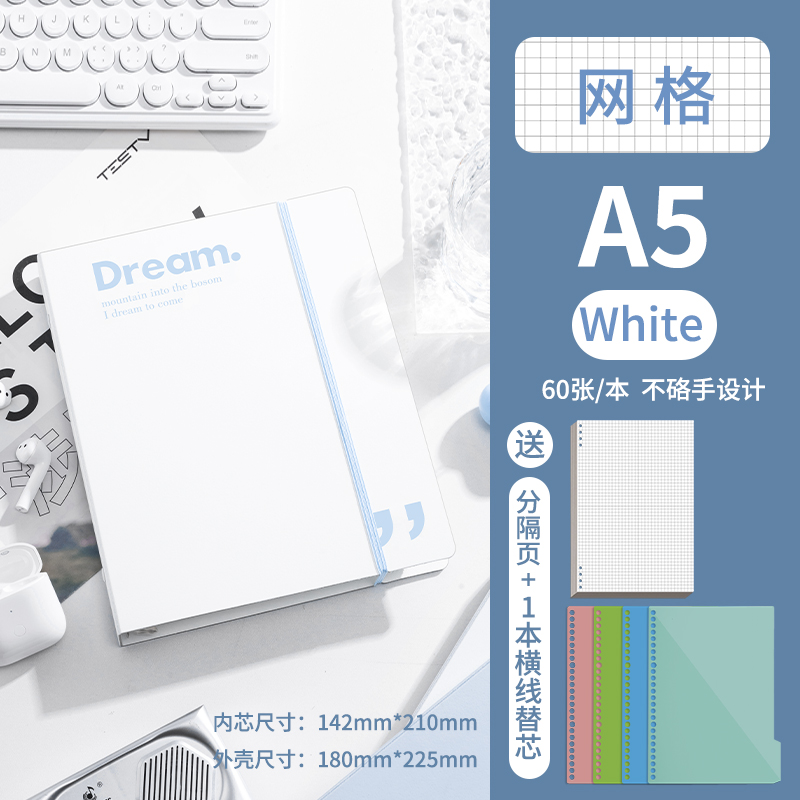 A5-горизонтальная линия белого цвета поставляется с разделительной страницей + 1 сменным сердечником горизонтальной линии.